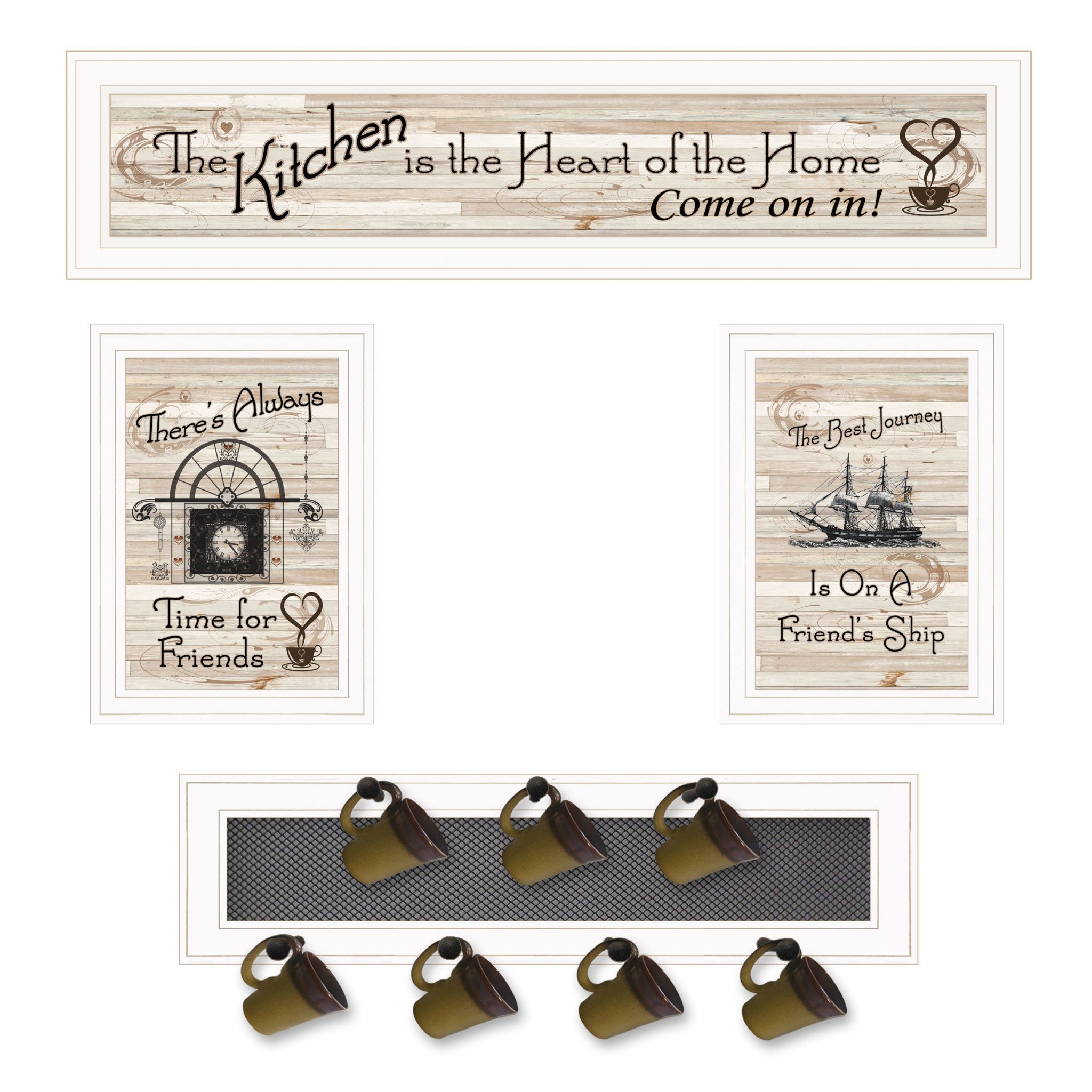 Set Of Four Kitchen Print 33x8 and Mug RackHorizonal 27x8x3 White Frame White Framed Print Kitchen Wall Art