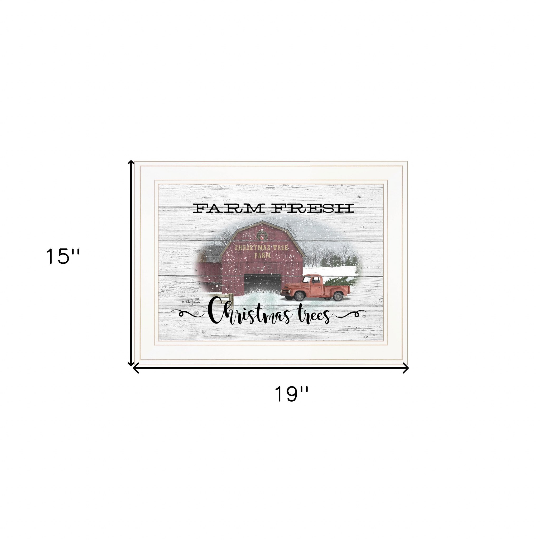 Add some christmas cheer to your space with this farm fresh christmas trees 2 white framed print wall art. This print is a visual artistic expression that allows you to decorate your space in style. Reproduced for you on paper, this hanging decorative accent will be a trendy and fashionable way to dress your walls. Hang on your wall to add some up to date fashion and decoration. Instantly liven up your space with this art that brings color and dimension to your walls. 15-inch H x 19-inch W x 1-inch D