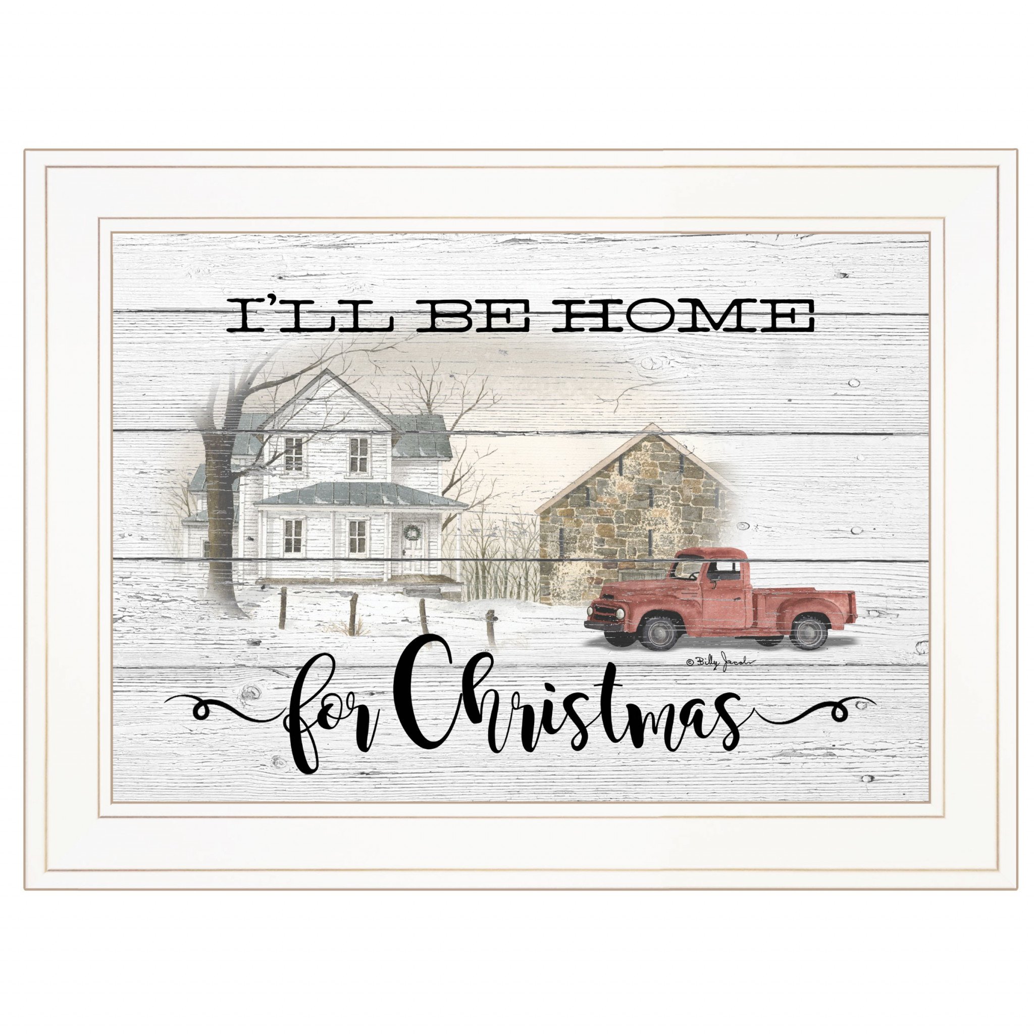 Add some christmas cheer to your space with this ill be home for christmas 2 white framed print wall art. This print is a visual artistic expression that allows you to decorate your space in style. Reproduced for you on paper, this hanging decorative accent will be a trendy and fashionable way to dress your walls. Adding this hanging wall art to your space to make your room feel more finished and attractive. Utilize this opportunity to create a focal point in the room with this fabulous wall decor option. 15-inch H x 19-inch W x 1-inch D