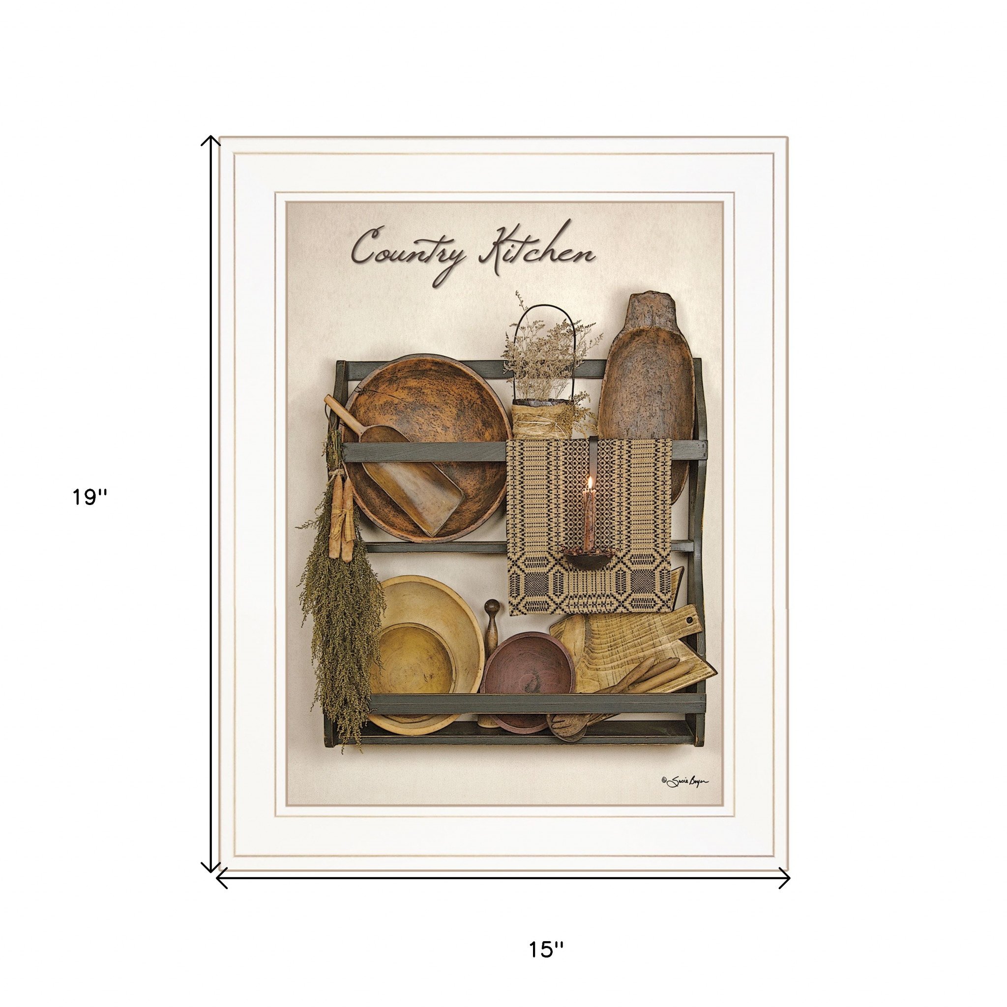 The country kitchen 12 white framed print kitchen wall art is the perfect decorative accessory for your home. This print is a visual artistic expression that allows you to decorate your space in style. Reproduced for you on paper, this hanging decorative accent will be a trendy and fashionable way to dress your walls. Adding this hanging wall art to your space to make your room feel more finished and attractive. Instantly liven up your space with this art that brings color and dimension to your walls. 15-inch H x 19-inch W x 1-inch D