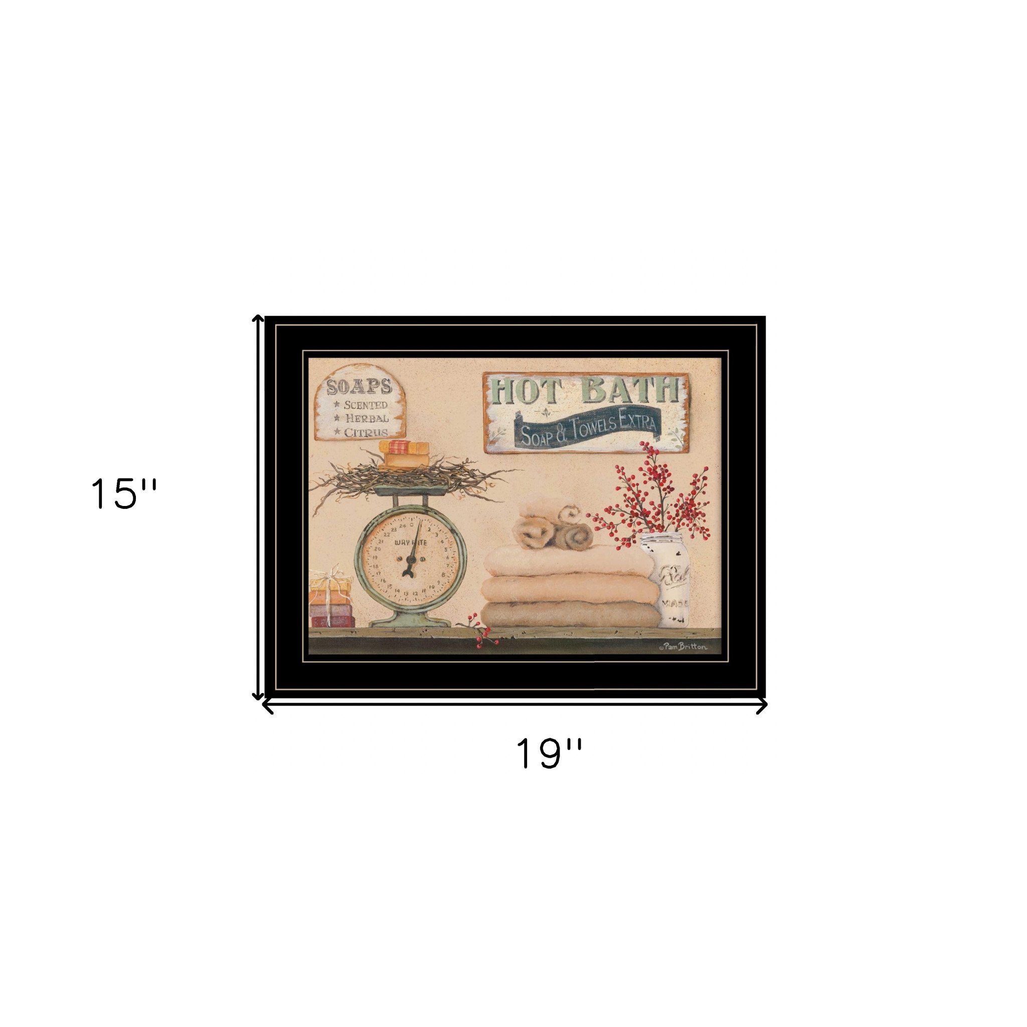 The hot bath 17 black framed print bathroom wall art is the perfect decorative accessory for your home. This print is a visual artistic expression that allows you to decorate your space in style. Reproduced for you on paper, this hanging decorative accent will be a trendy and fashionable way to dress your walls. Hang on your wall to add some up to date fashion and decoration. Utilize this opportunity to create a focal point in the room with this fabulous wall decor option. 15-inch H x 19-inch W x 1-inch D