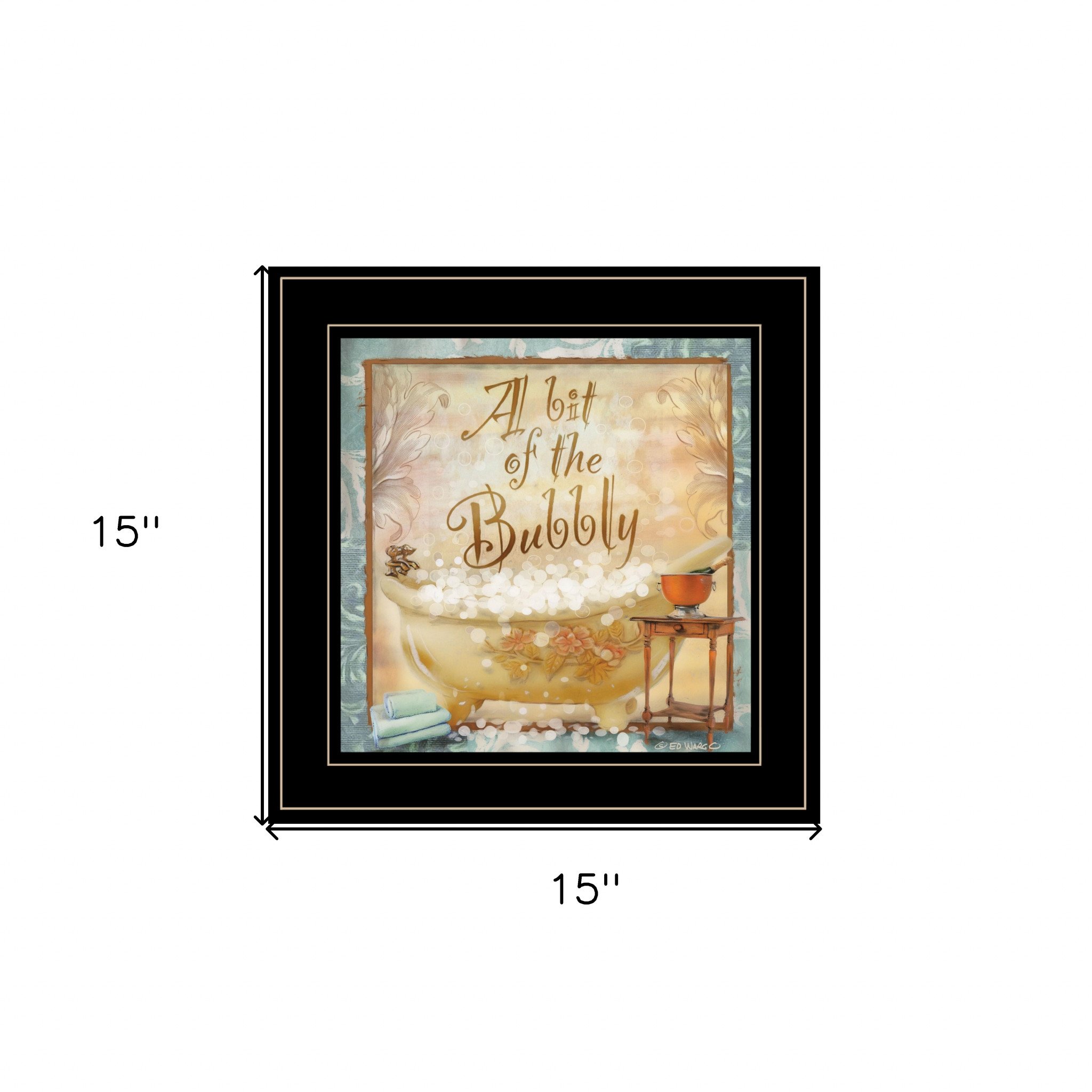 Bring some sizzle to your space with this eye-catching a bit of bubbly 2 black framed print bathroom wall art. This print is a visual artistic expression that allows you to decorate your space in style. Reproduced for you on paper, this hanging decorative accent will be a trendy and fashionable way to dress your walls. Hang on your wall to add some up to date fashion and decoration. Utilize this opportunity to create a focal point in the room with this fabulous wall decor option. 15-inch H x 15-inch W x 1-inch D