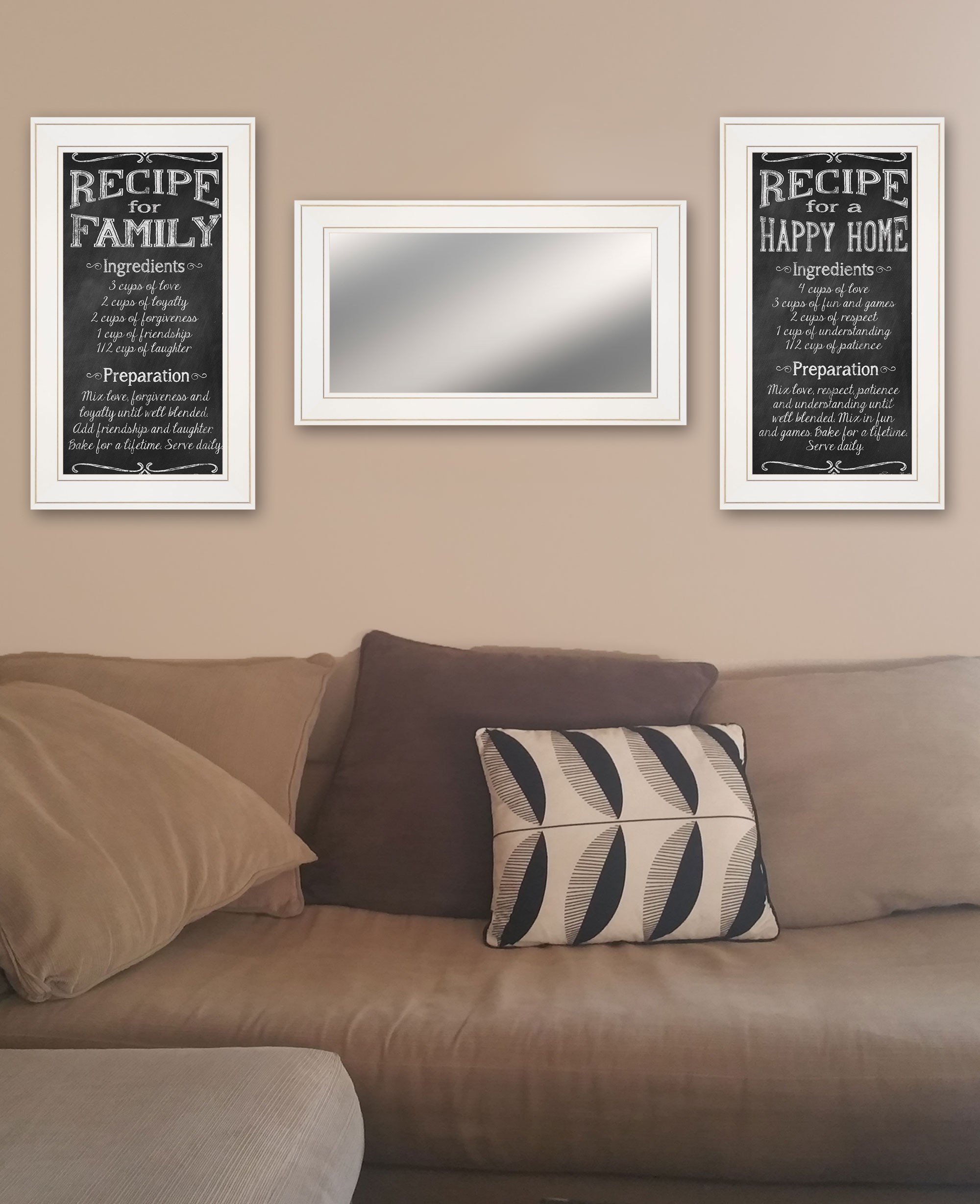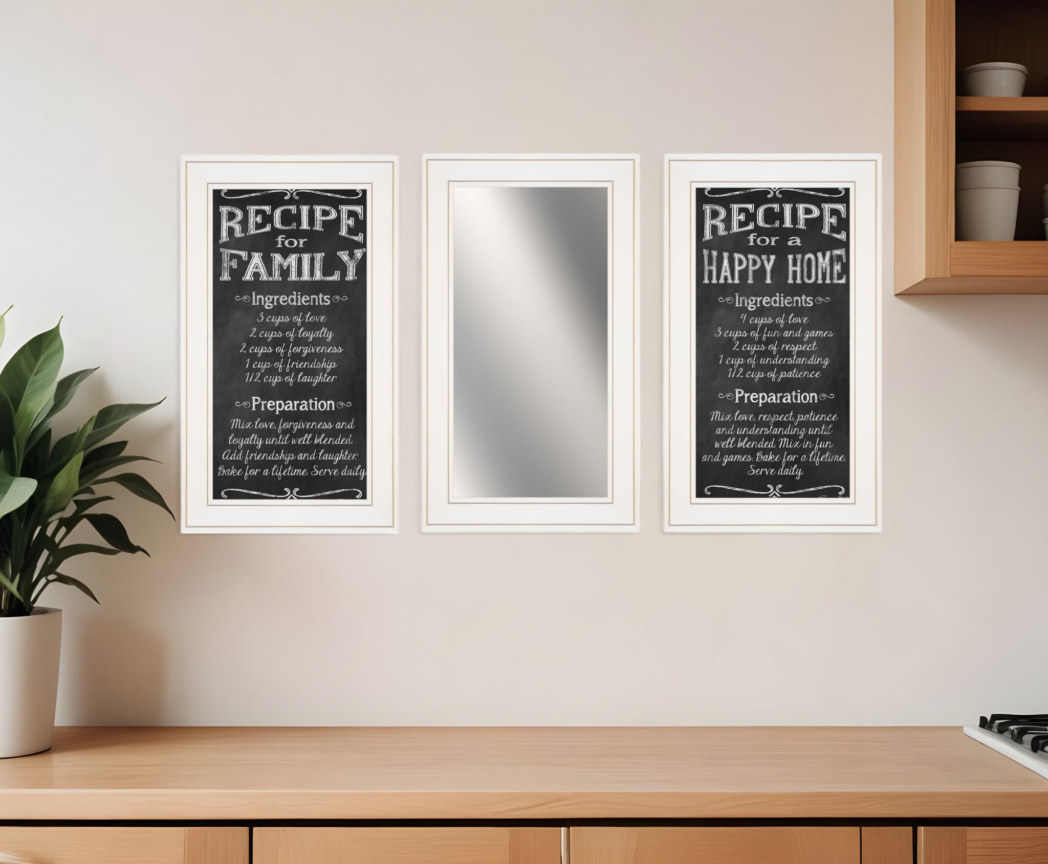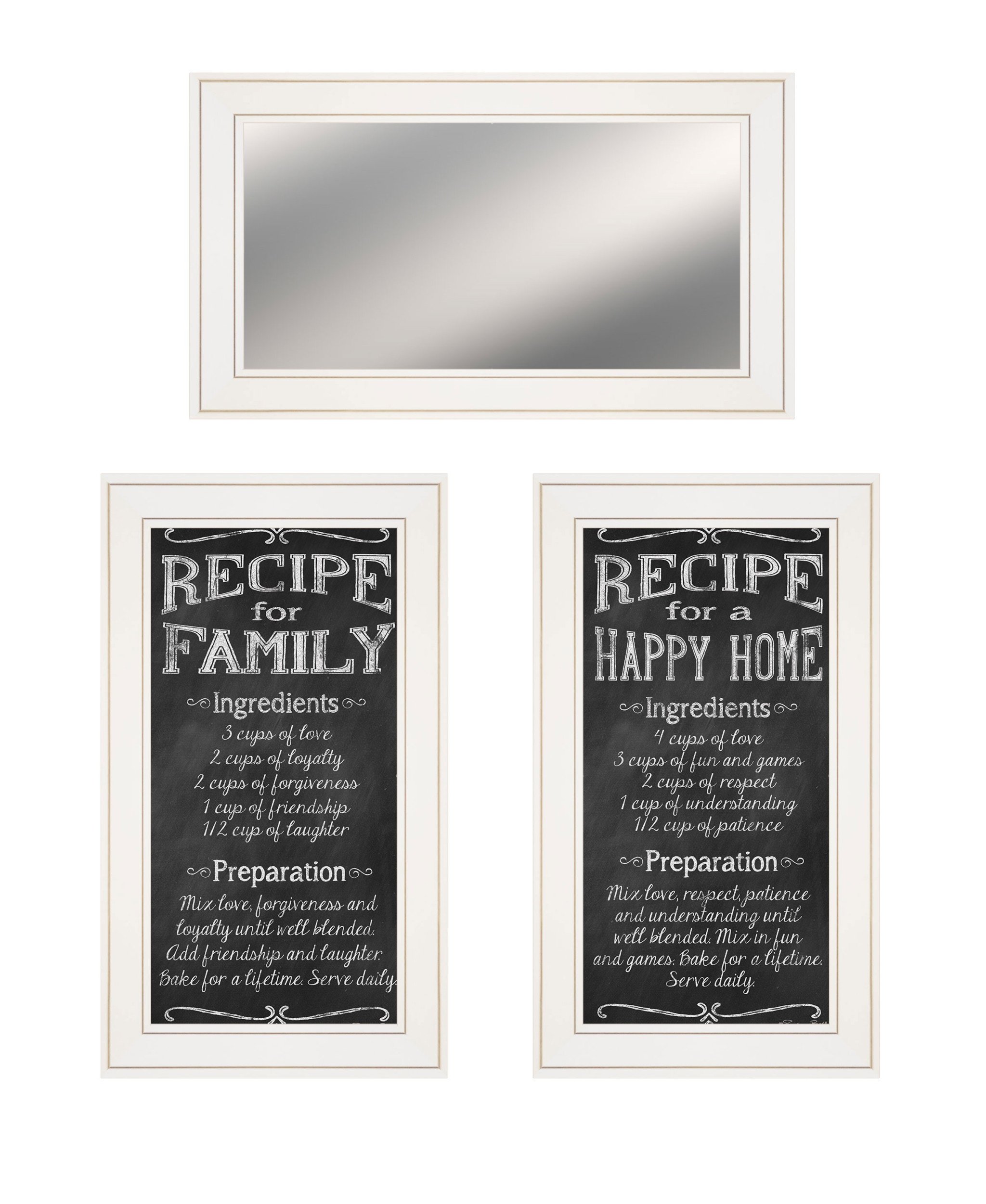 Home > Set Of Three Family Recipe White Framed Kitchen Wall Art With Mirror