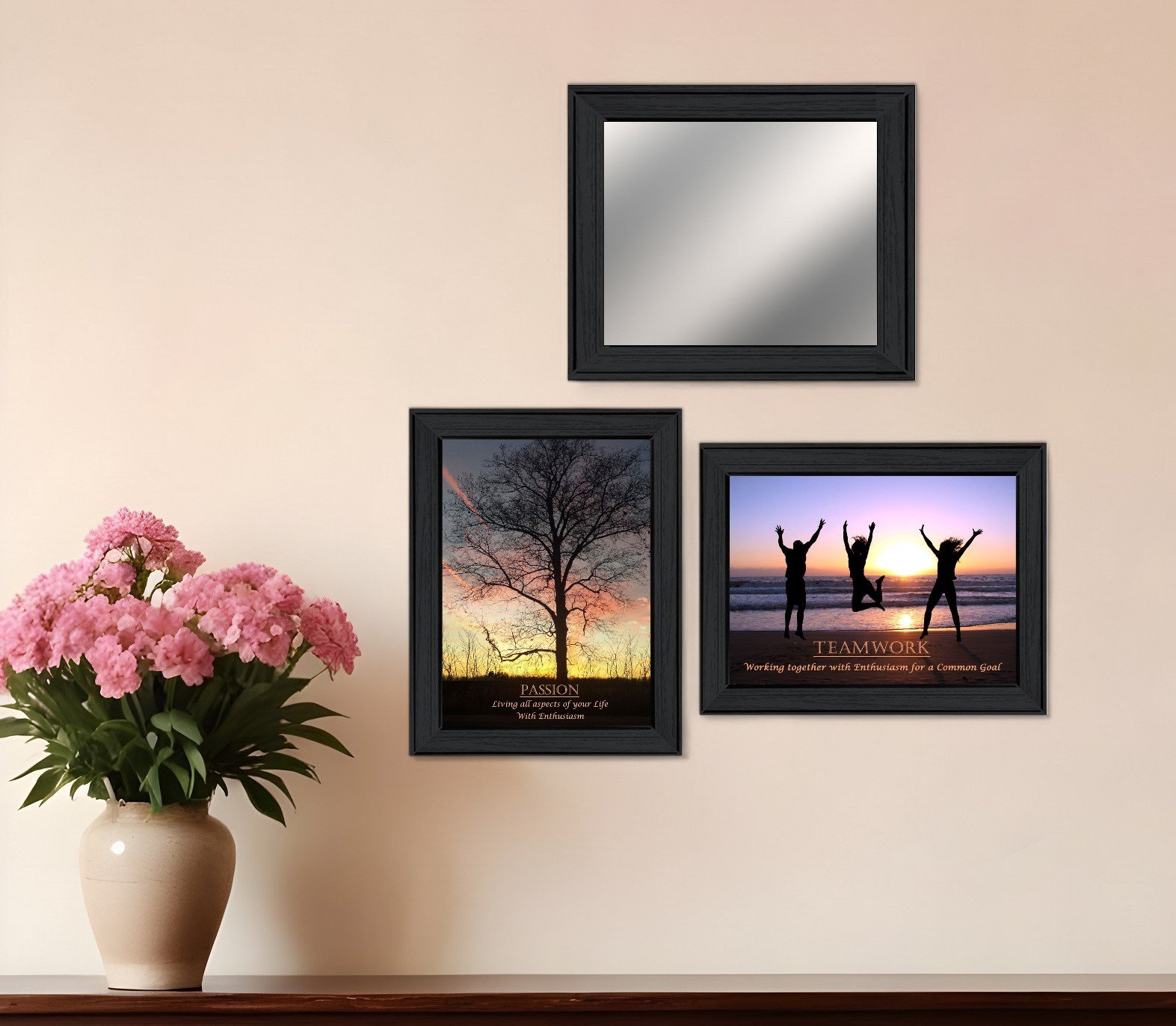 Set Of Three Passion and Teamwork Black Framed Wall Art With Mirror