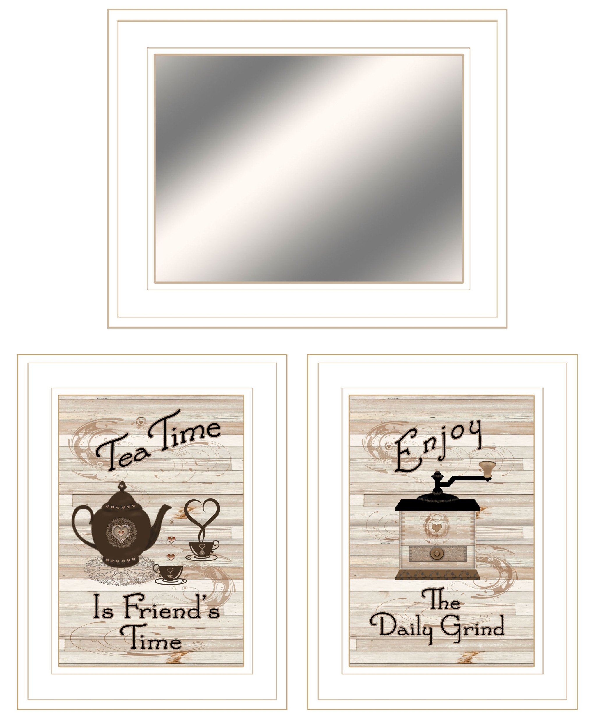 Home > Set Of Three Coffee and Tea Time White Framed Print Kitchen Wall Art With Mirror
