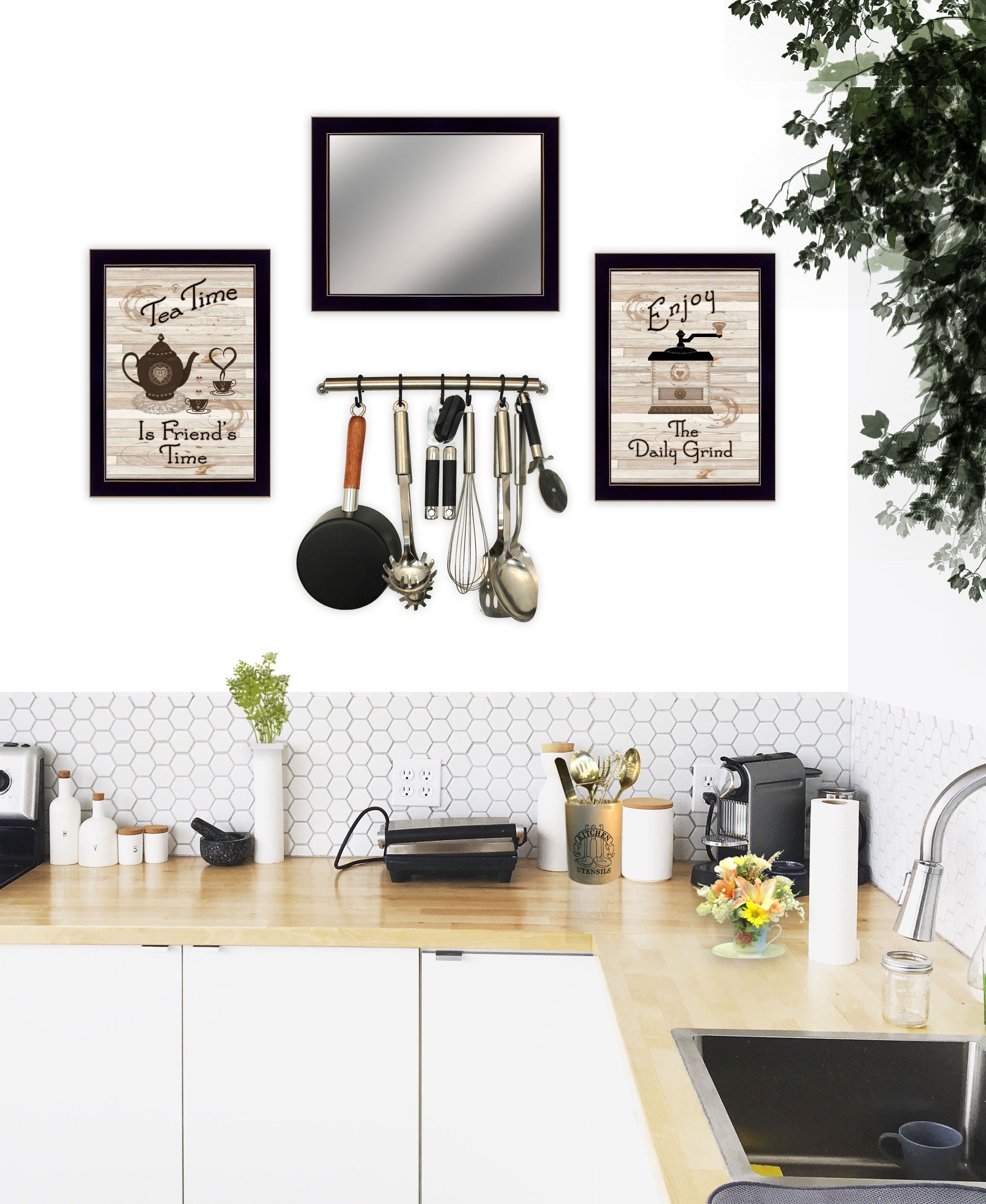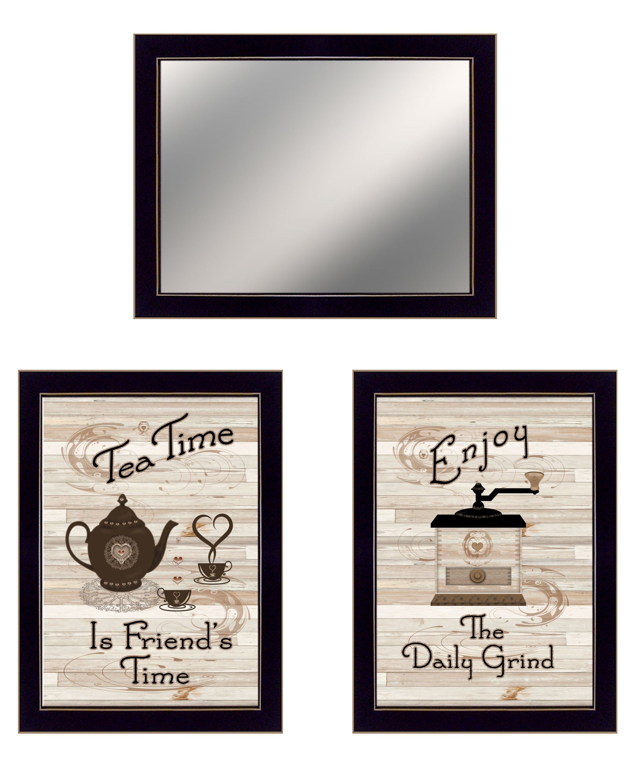 Home > Set Of Three Coffee and Tea Time Black Framed Kitchen Wall Art With Mirror