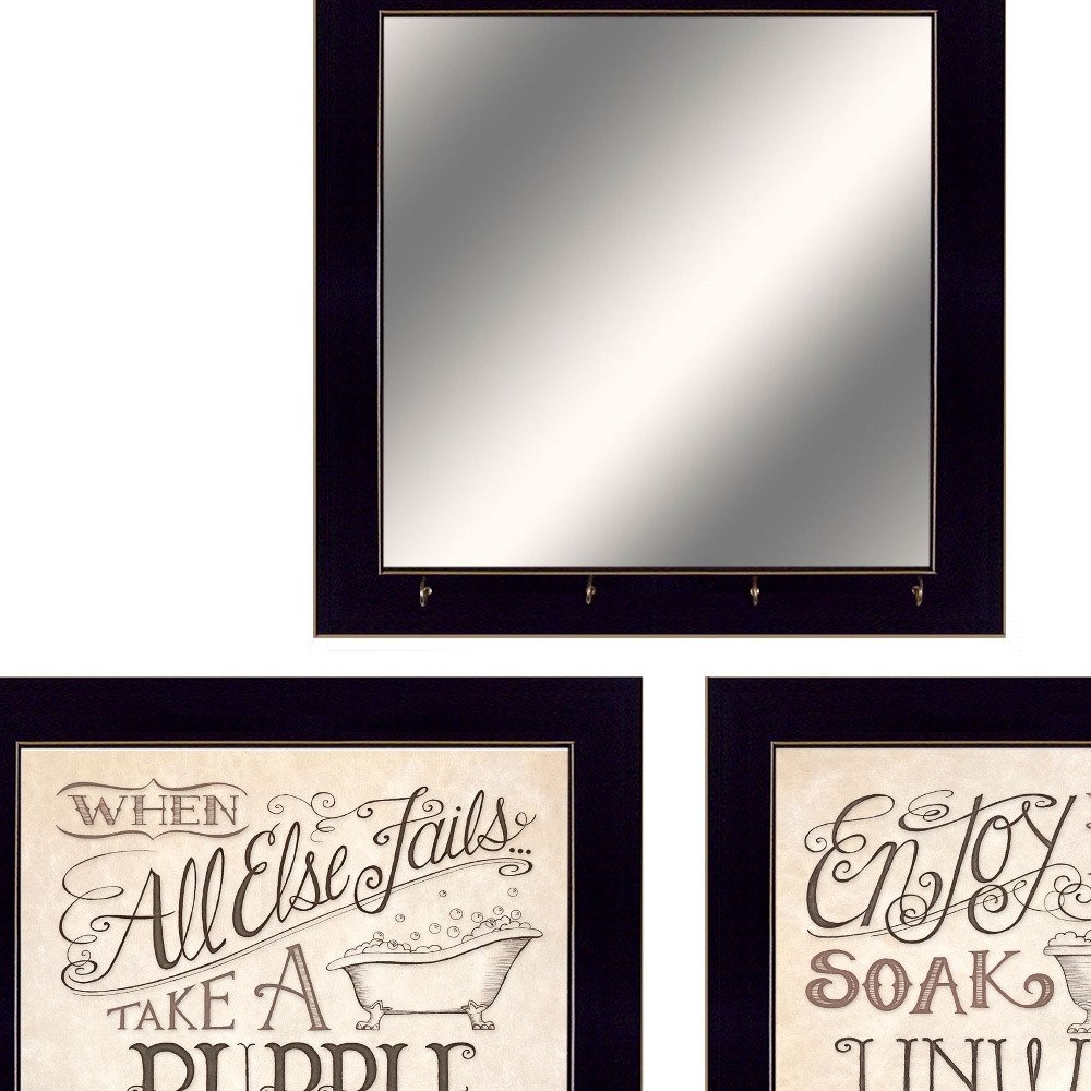 Add an air of fashion to your room and rejuvenate the space with this set of three soak and unwind black framed print bathroom wall art. This print is a visual artistic expression that allows you to decorate your space in style. Reproduced for you on paper, this hanging decorative accent will be a trendy and fashionable way to dress your walls. Adding this hanging wall art to your space to make your room feel more finished and attractive. Instantly liven up your space with this art that brings color and dimension to your walls. 14-inch H x 14-inch W x 1-inch D