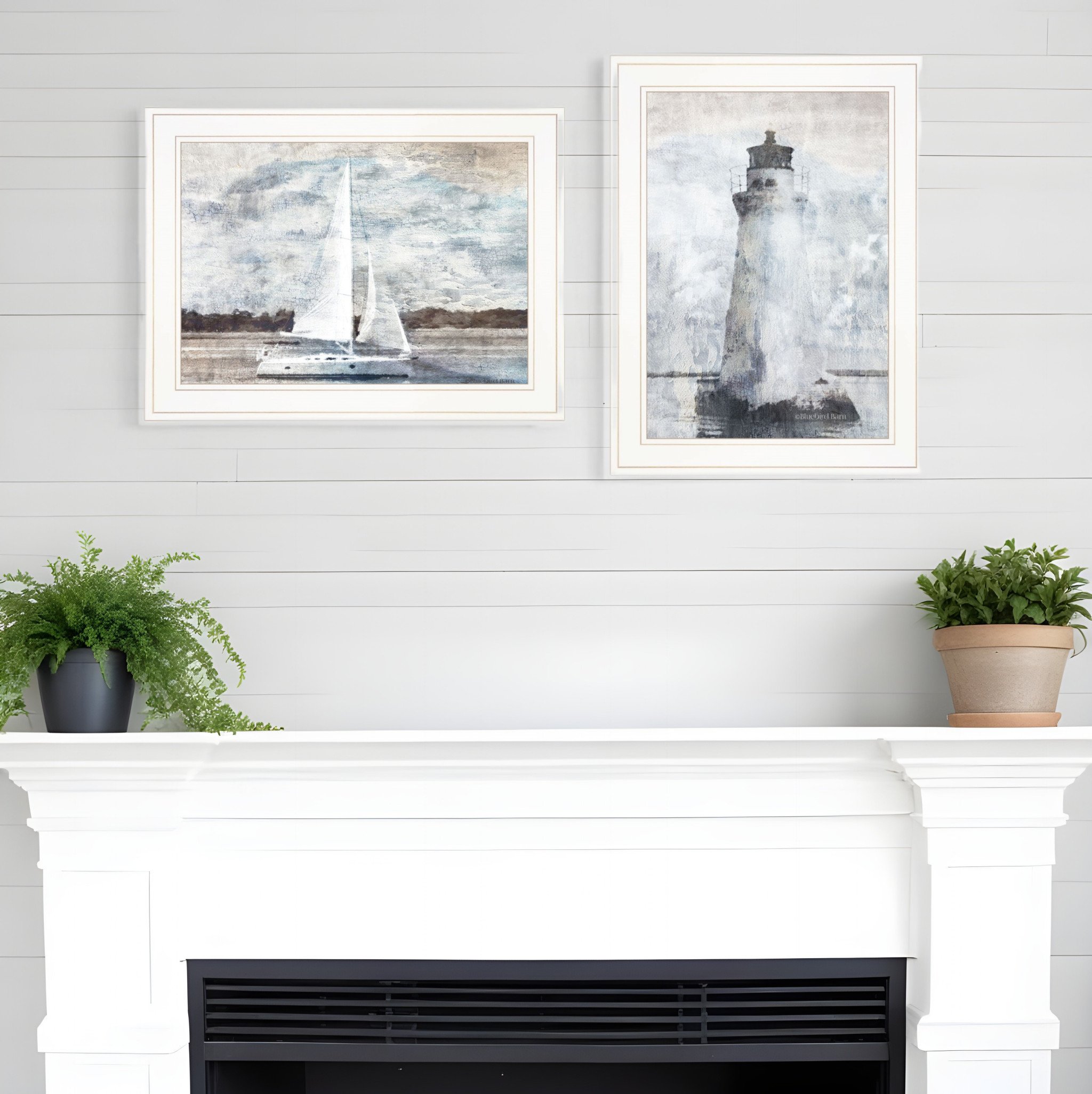 Unique and decorative, this set of two lighthouse sailboat 1 white framed print wall art will leave a lasting impression. This print is a visual artistic expression that allows you to decorate your space in style. Reproduced for you on paper, this hanging decorative accent will be a trendy and fashionable way to dress your walls. Hang on your wall to add some up to date fashion and decoration. Instantly liven up your space with this art that brings color and dimension to your walls. 15-inch H x 19-inch W x 1-inch D
