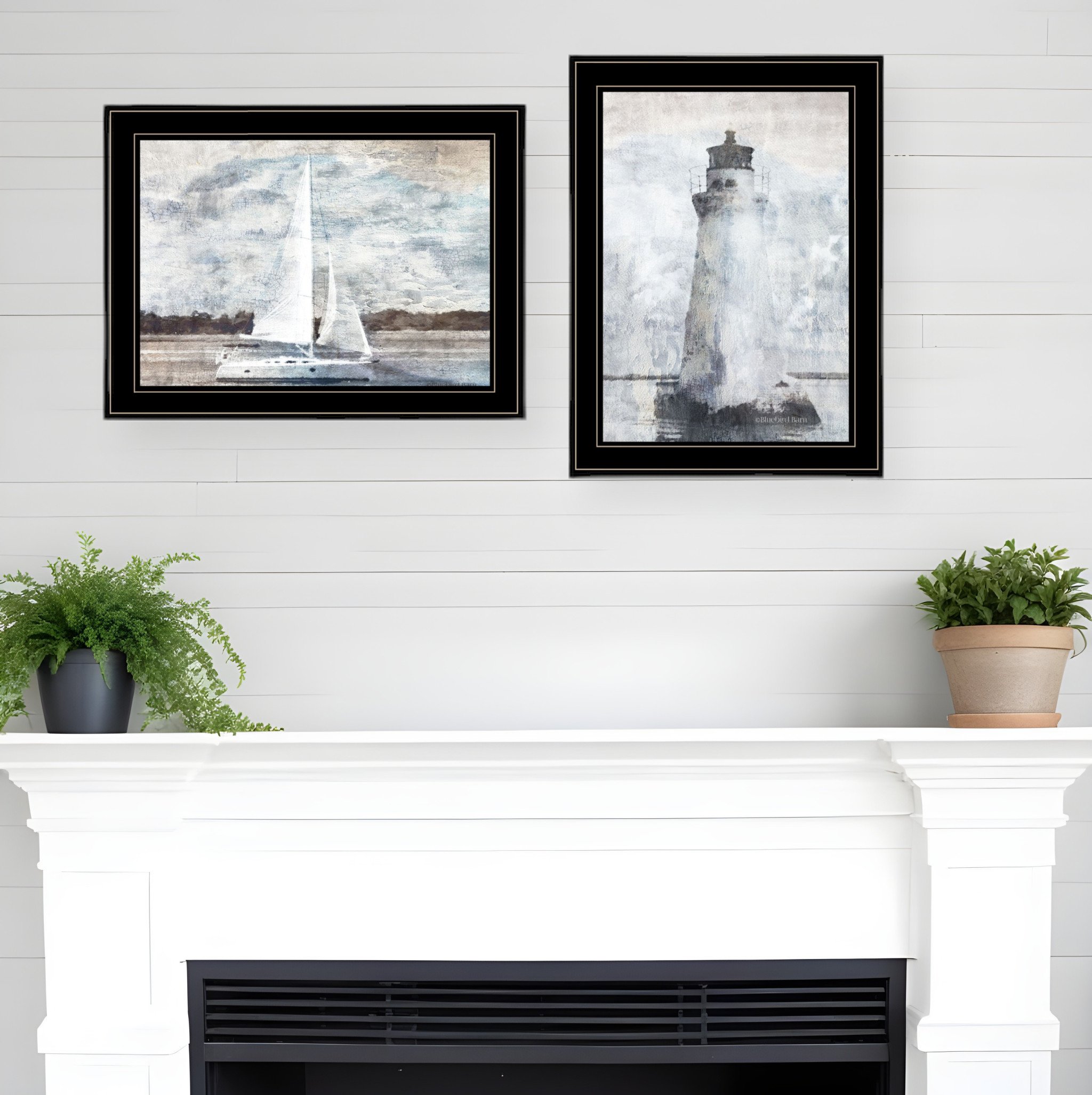 Set Of Two Lighthouse Sailboat 2 Black Framed Print Wall Art