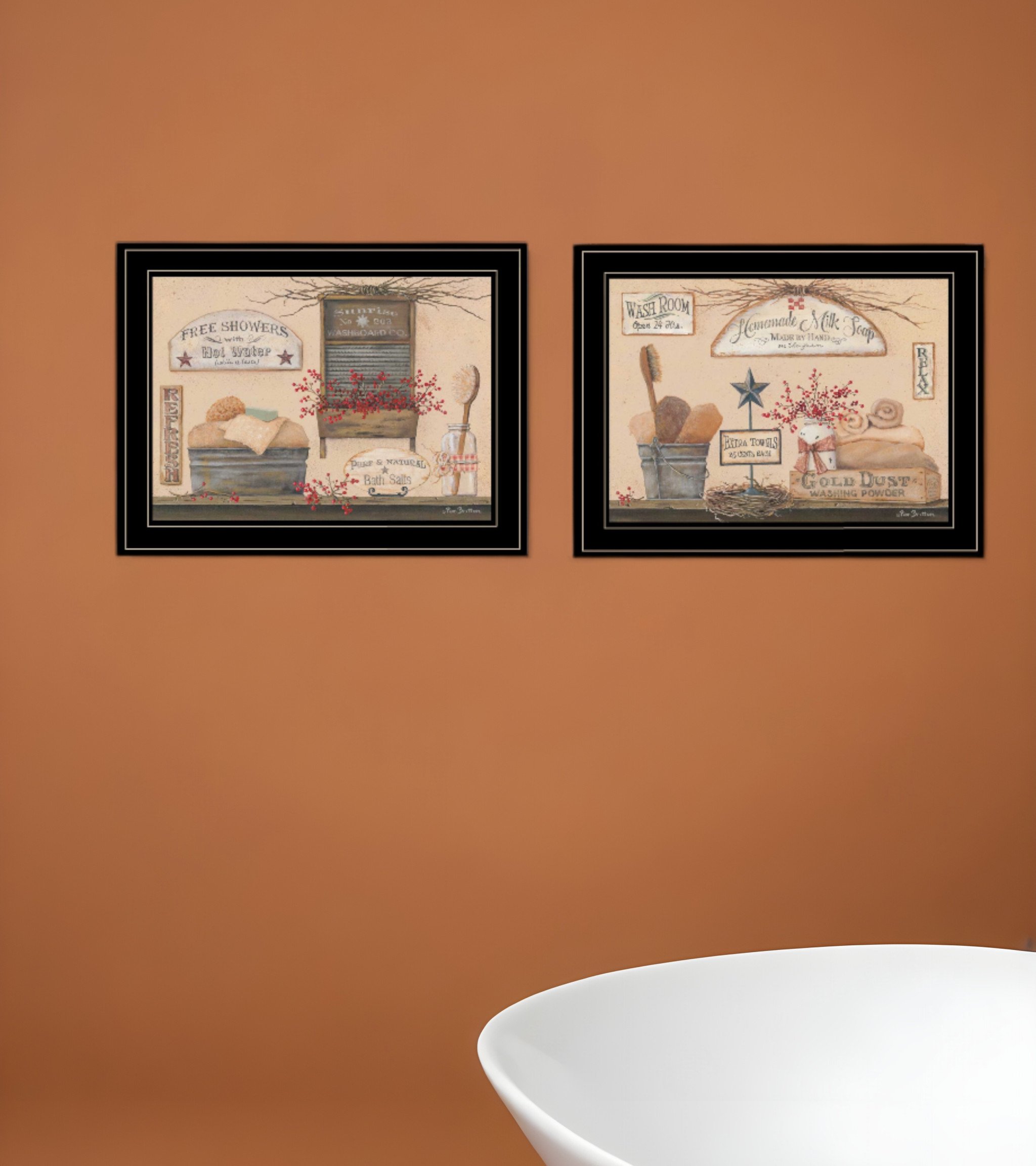 This set of two wash room 5 black framed print bathroom wall art will add a beautiful decorative accent to your decor. This print is a visual artistic expression that allows you to decorate your space in style. Reproduced for you on paper, this hanging decorative accent will be a trendy and fashionable way to dress your walls. Hang on your wall to add some up to date fashion and decoration. Instantly liven up your space with this art that brings color and dimension to your walls. 15-inch H x 19-inch W x 1-inch D