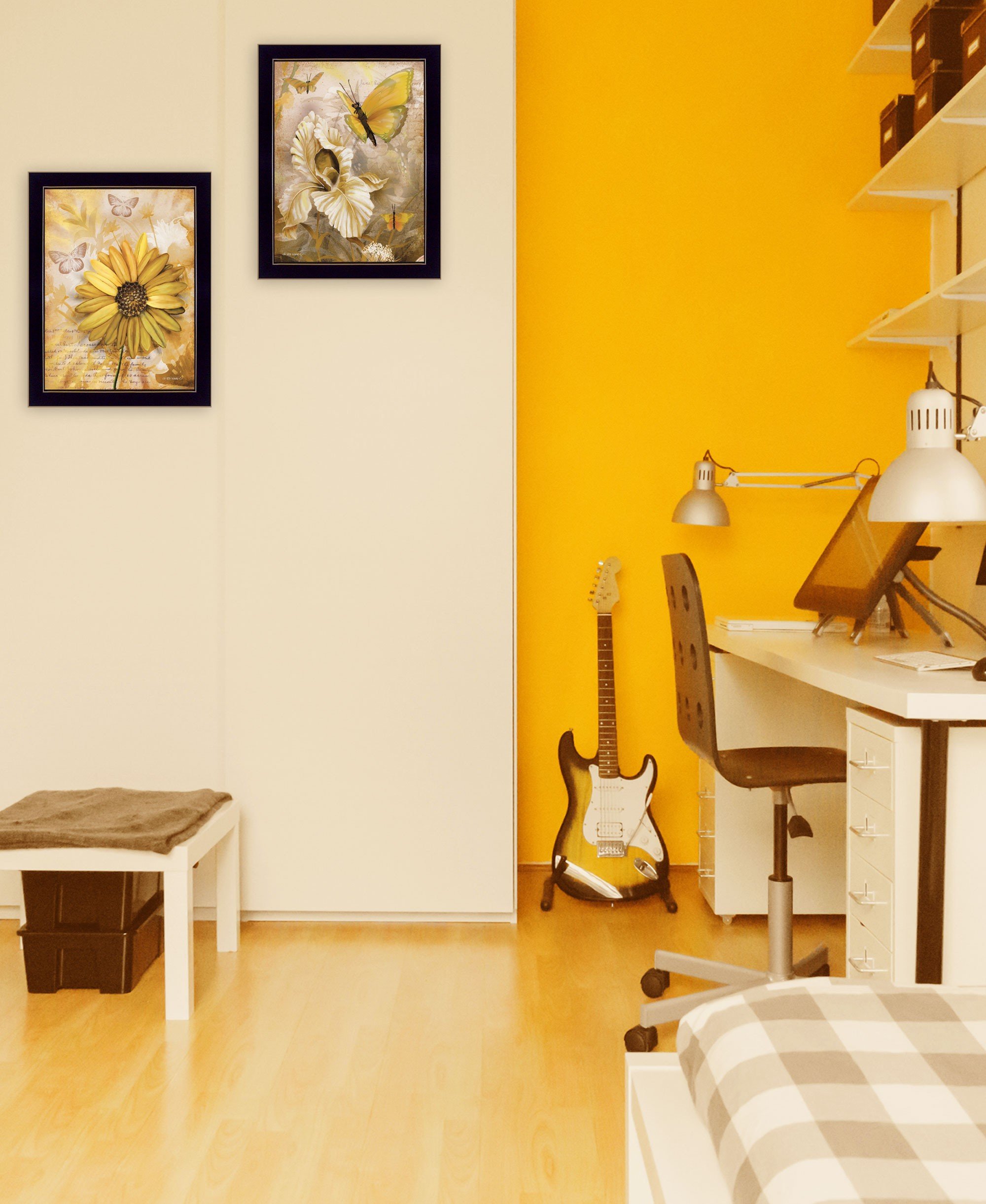 This set of two flowers and butterflies 3 black framed print wall art will add a beautiful decorative accent to your decor. This print is a visual artistic expression that allows you to decorate your space in style. Reproduced for you on paper, this hanging decorative accent will be a trendy and fashionable way to dress your walls. Adding this hanging wall art to your space to make your room feel more finished and attractive. Utilize this opportunity to create a focal point in the room with this fabulous wall decor option. 14-inch H x 18-inch W x 1-inch D