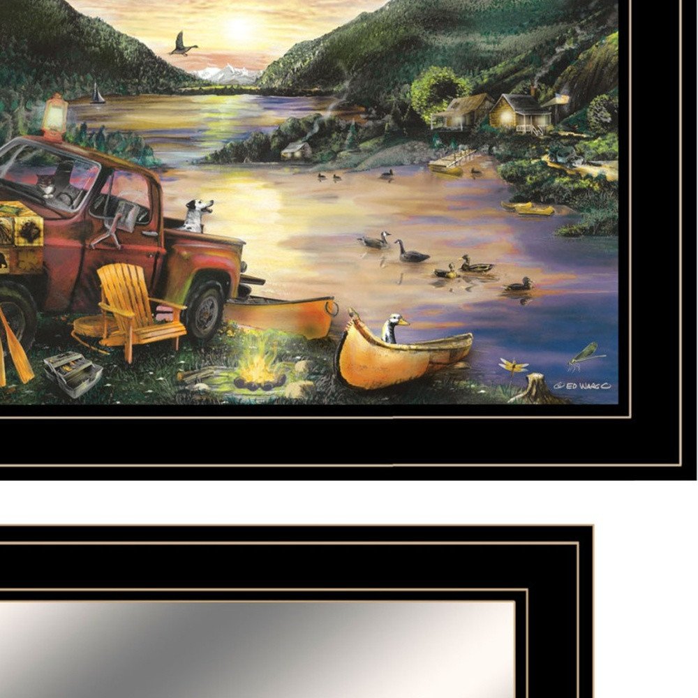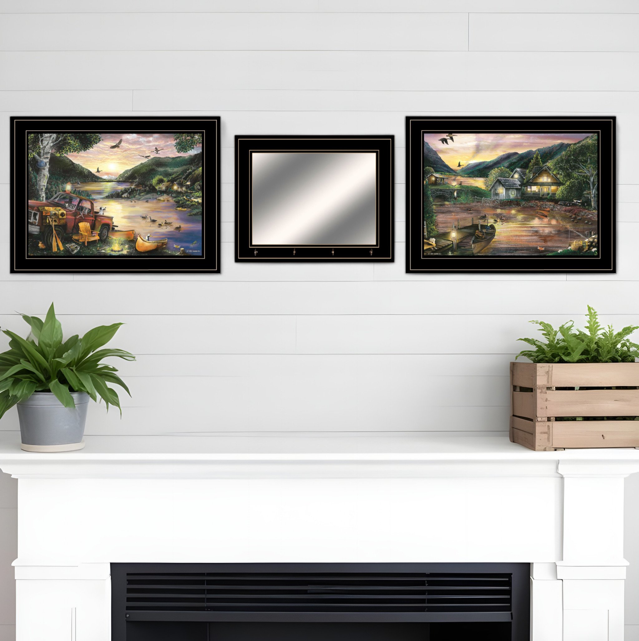 This set of three lakefront camping 2 black framed print wall art will add a beautiful decorative accent to your decor. This print is a visual artistic expression that allows you to decorate your space in style. Reproduced for you on paper, this hanging decorative accent will be a trendy and fashionable way to dress your walls. Adding this hanging wall art to your space to make your room feel more finished and attractive. Utilize this opportunity to create a focal point in the room with this fabulous wall decor option. 19-inch H x 15-inch W x 1-inch D