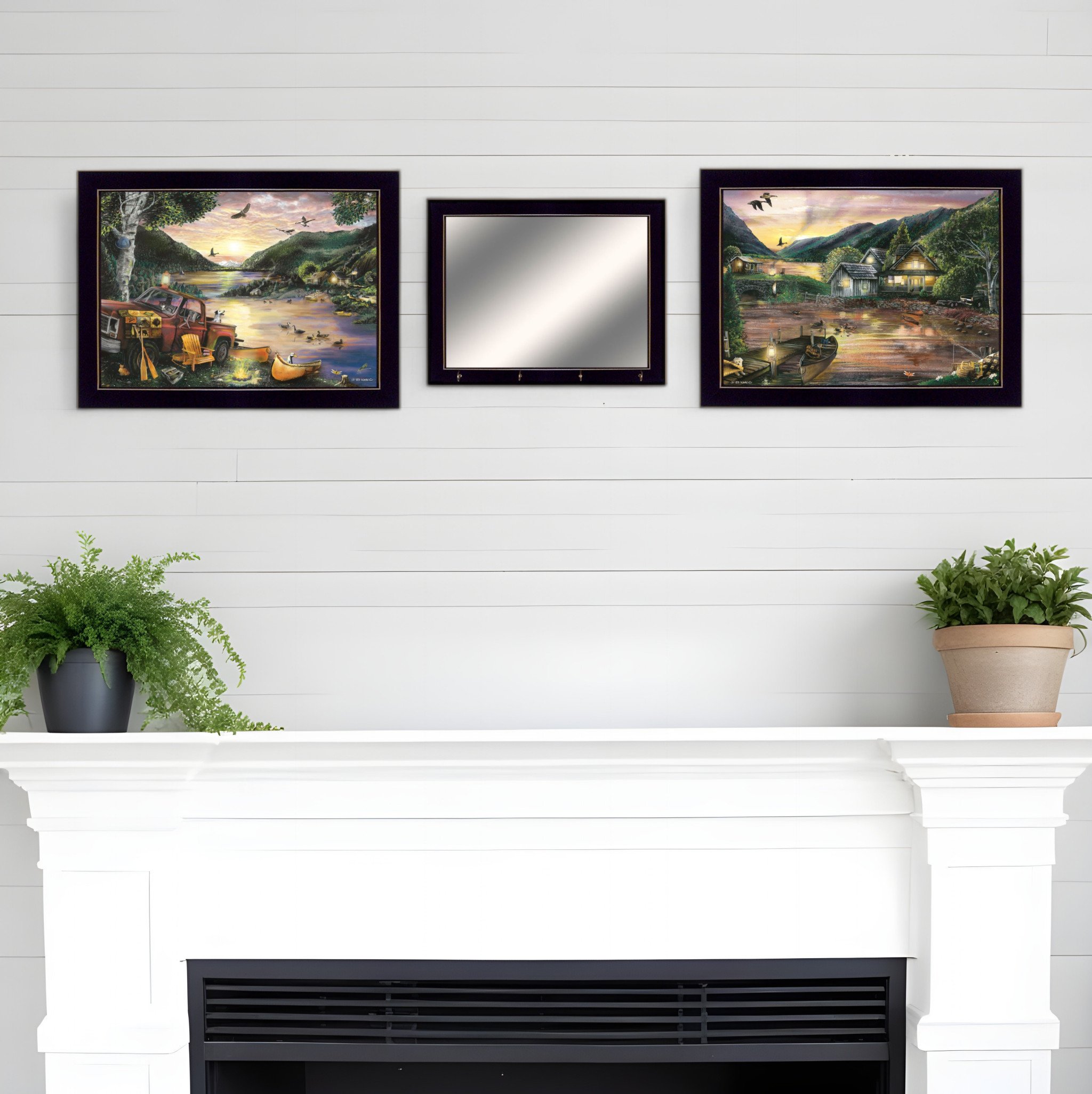 The set of three lakefront camping 3 black framed print wall art is the perfect decorative accessory for your home. This print is a visual artistic expression that allows you to decorate your space in style. Reproduced for you on paper, this hanging decorative accent will be a trendy and fashionable way to dress your walls. Hang on your wall to add some up to date fashion and decoration. Utilize this opportunity to create a focal point in the room with this fabulous wall decor option. 14-inch H x 18-inch W x 1-inch D