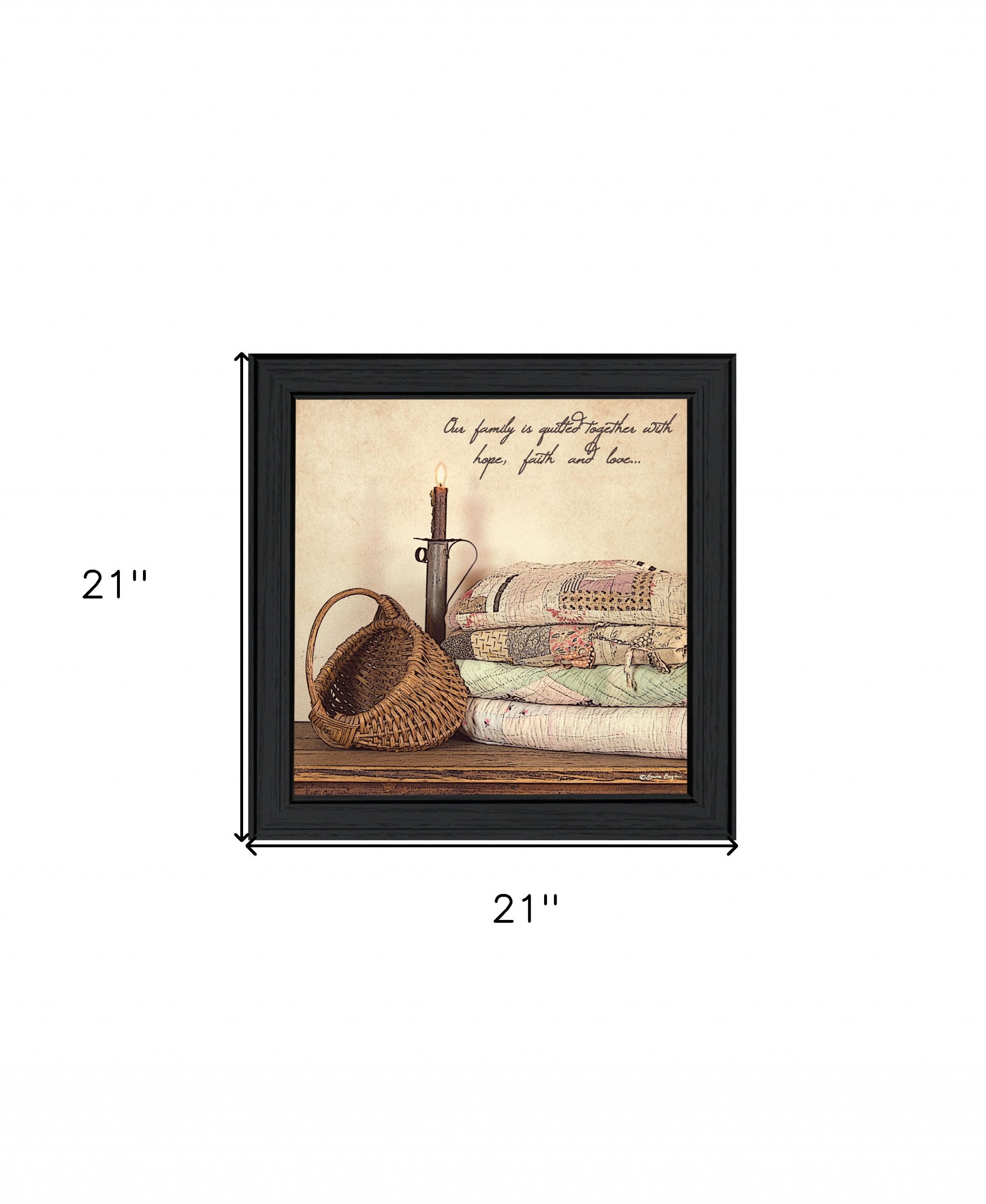 The quilted together 2 black framed print wall art is the perfect decorative accessory for your home. This print is a visual artistic expression that allows you to decorate your space in style. Reproduced for you on paper, this hanging decorative accent will be a trendy and fashionable way to dress your walls. Adding this hanging wall art to your space to make your room feel more finished and attractive. Utilize this opportunity to create a focal point in the room with this fabulous wall decor option. 21-inch H x 21-inch W x 1-inch D