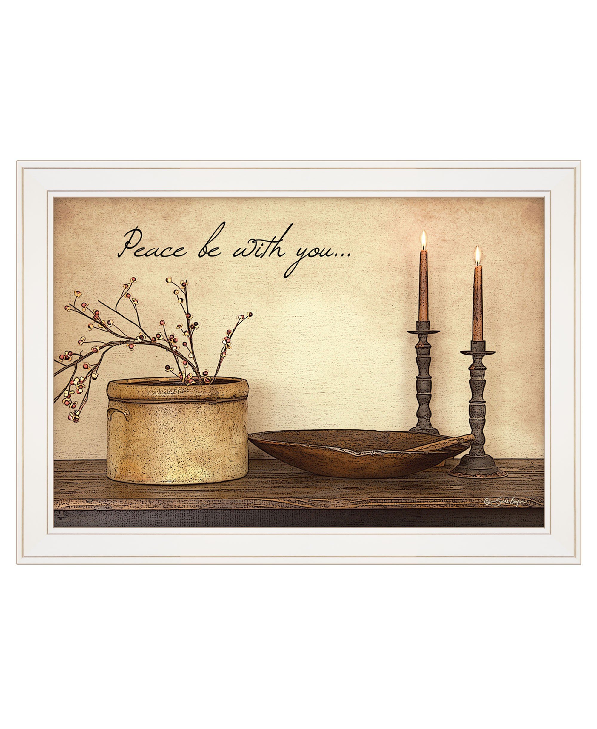 Add an air of fashion to your room and rejuvenate the space with this peace be with you 4 white framed print wall art. This print is a visual artistic expression that allows you to decorate your space in style. Reproduced for you on paper, this hanging decorative accent will be a trendy and fashionable way to dress your walls. Hang on your wall to add some up to date fashion and decoration. Utilize this opportunity to create a focal point in the room with this fabulous wall decor option. 15-inch H x 21-inch W x 1-inch D