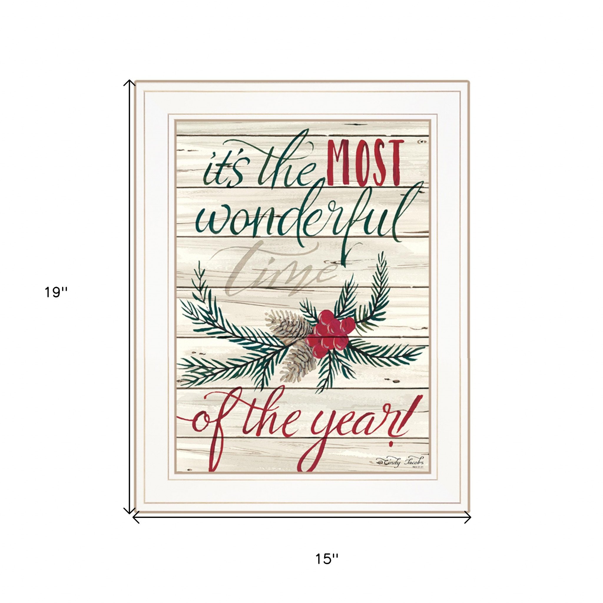 Bring some sizzle to your space with this eye-catching the most wonderful time 1 white framed print wall art. This print is a visual artistic expression that allows you to decorate your space in style. Reproduced for you on paper, this hanging decorative accent will be a trendy and fashionable way to dress your walls. Hang on your wall to add some up to date fashion and decoration. Utilize this opportunity to create a focal point in the room with this fabulous wall decor option. 19-inch H x 15-inch W x 1-inch D