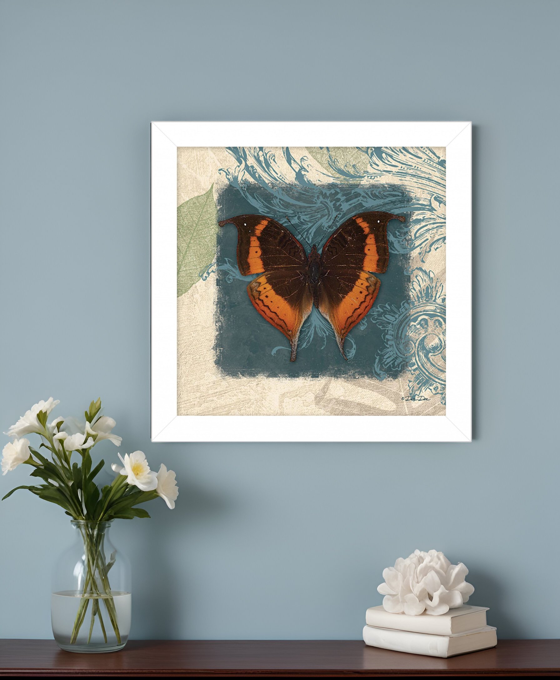 Bring some sizzle to your space with this eye-catching swirl butterfly ii white framed print wall art. This butterfly inspired art will be a great addition to your space. This print is a visual artistic expression that allows you to decorate your space in style. Reproduced for you on paper, this hanging decorative accent will be a trendy and fashionable way to dress your walls. Adding this hanging wall art to your space to make your room feel more finished and attractive. Utilize this opportunity to create a focal point in the room with this fabulous wall decor option. 14-inch H x 14-inch W x 1-inch D