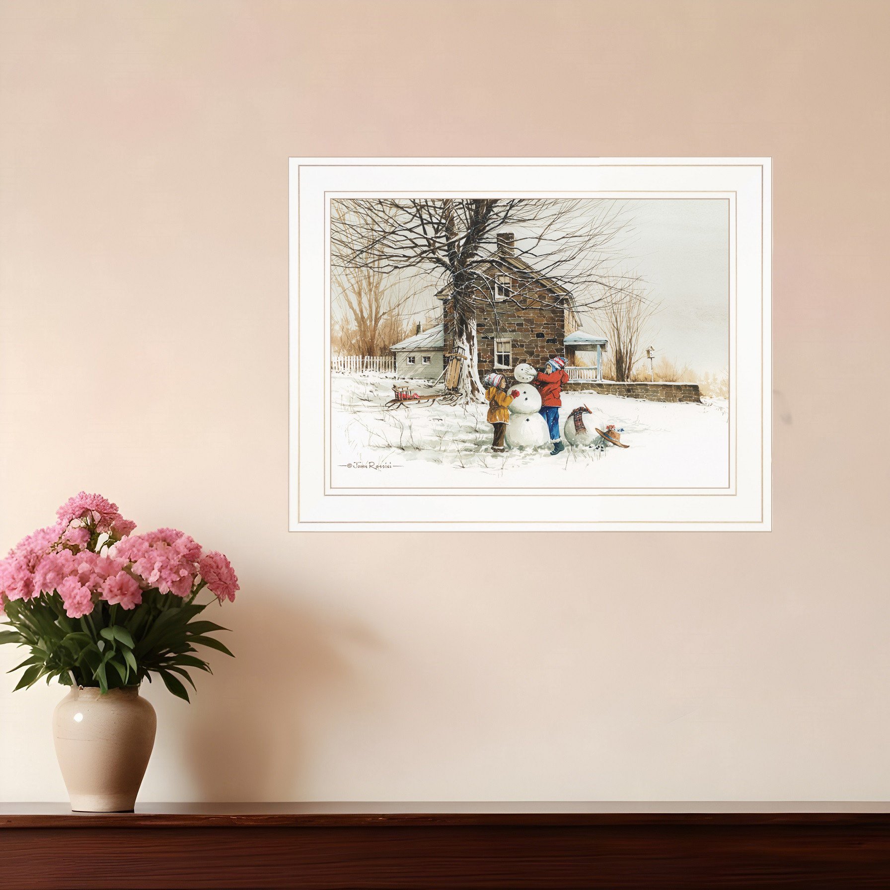 This the joy of snow 2 white framed print wall art will add a beautiful decorative accent to your decor. This print is a visual artistic expression that allows you to decorate your space in style. Reproduced for you on paper, this hanging decorative accent will be a trendy and fashionable way to dress your walls. Hang on your wall to add some up to date fashion and decoration. Utilize this opportunity to create a focal point in the room with this fabulous wall decor option. 15-inch H x 19-inch W x 1-inch D