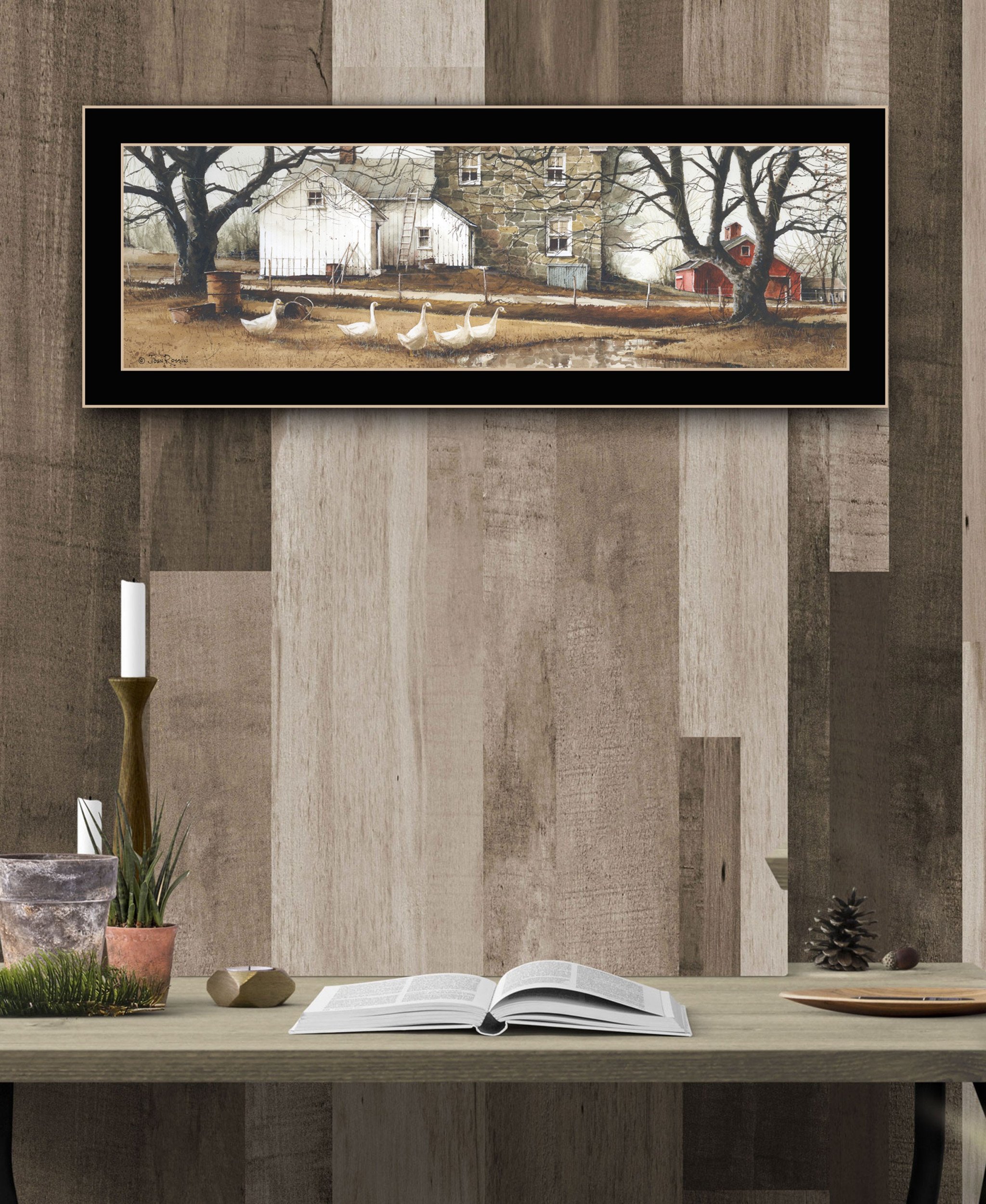 Add an air of fashion to your room and rejuvenate the space with this puddle jumpers 2 black framed print wall art. This print is a visual artistic expression that allows you to decorate your space in style. Reproduced for you on paper, this hanging decorative accent will be a trendy and fashionable way to dress your walls. Hang on your wall to add some up to date fashion and decoration. Instantly liven up your space with this art that brings color and dimension to your walls. 8-inch H x 20-inch W x 1-inch D