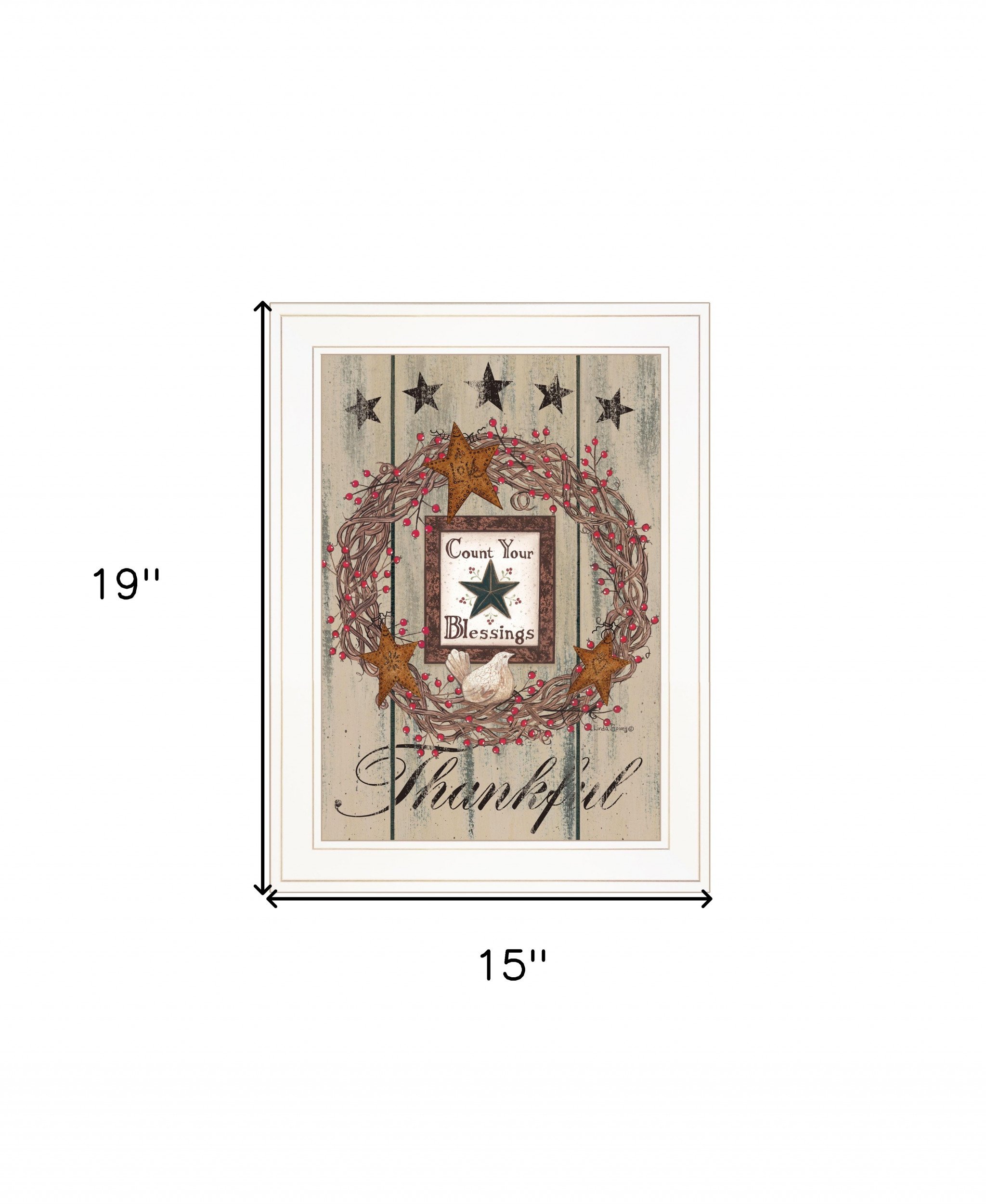 Add an air of fashion to your room and rejuvenate the space with this count your blessings 1 white framed print wall art. This print is a visual artistic expression that allows you to decorate your space in style. Reproduced for you on paper, this hanging decorative accent will be a trendy and fashionable way to dress your walls. Adding this hanging wall art to your space to make your room feel more finished and attractive. Instantly liven up your space with this art that brings color and dimension to your walls. 19-inch H x 15-inch W x 1-inch D