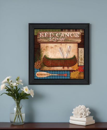 Add an air of fashion to your room and rejuvenate the space with this red canoe lodge 2 black framed print wall art. This transportation inspired wall art features a boat icon and will bring a refreshing look and perspective to your walls. This print is a visual artistic expression that allows you to decorate your space in style. Reproduced for you on paper, this hanging decorative accent will be a trendy and fashionable way to dress your walls. Adding this hanging wall art to your space to make your room feel more finished and attractive. Instantly liven up your space with this art that brings color and dimension to your walls. 15-inch H x 15-inch W x 1-inch D