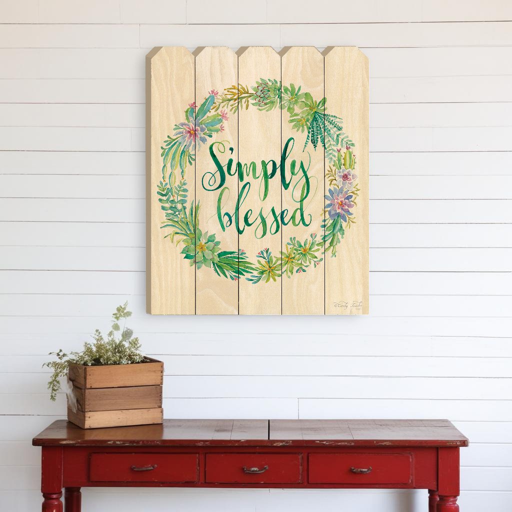 Bring some sizzle to your space with this eye-catching simply blessed unframed print wall art. This print is a visual artistic expression that allows you to decorate your space in style. Reproduced for you on wood, this hanging decorative accent will be a trendy and fashionable way to dress your walls in a rustic and modern farmhouse vibe. Hang on your wall to add some up to date fashion and decoration. Instantly liven up your space with this art that brings color and dimension to your walls. 20-inch H x 15-inch W x 1-inch D