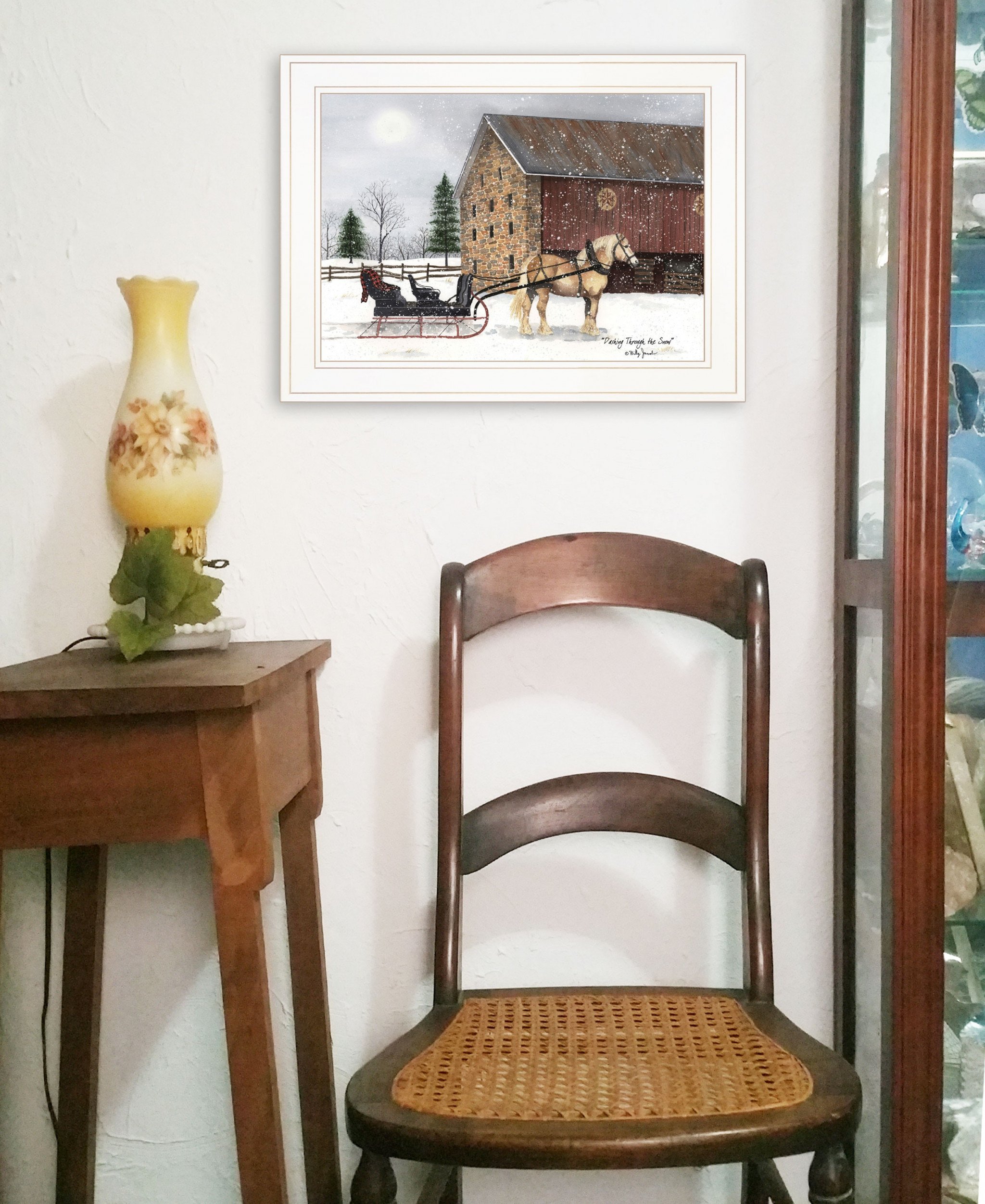 This dashing through the snow 1 white framed print wall art will add a beautiful decorative accent to your decor. This print is a visual artistic expression that allows you to decorate your space in style. Reproduced for you on wood, this hanging decorative accent will be a trendy and fashionable way to dress your walls in a rustic and modern farmhouse vibe. Hang on your wall to add some up to date fashion and decoration. Instantly liven up your space with this art that brings color and dimension to your walls. 15-inch H x 19-inch W x 1-inch D