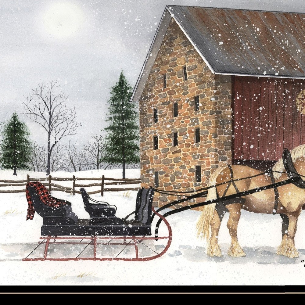 Bring some sizzle to your space with this eye-catching dashing through the snow 2 black framed print wall art. This print is a visual artistic expression that allows you to decorate your space in style. Reproduced for you on wood, this hanging decorative accent will be a trendy and fashionable way to dress your walls in a rustic and modern farmhouse vibe. Hang on your wall to add some up to date fashion and decoration. Instantly liven up your space with this art that brings color and dimension to your walls. 15-inch H x 19-inch W x 1-inch D