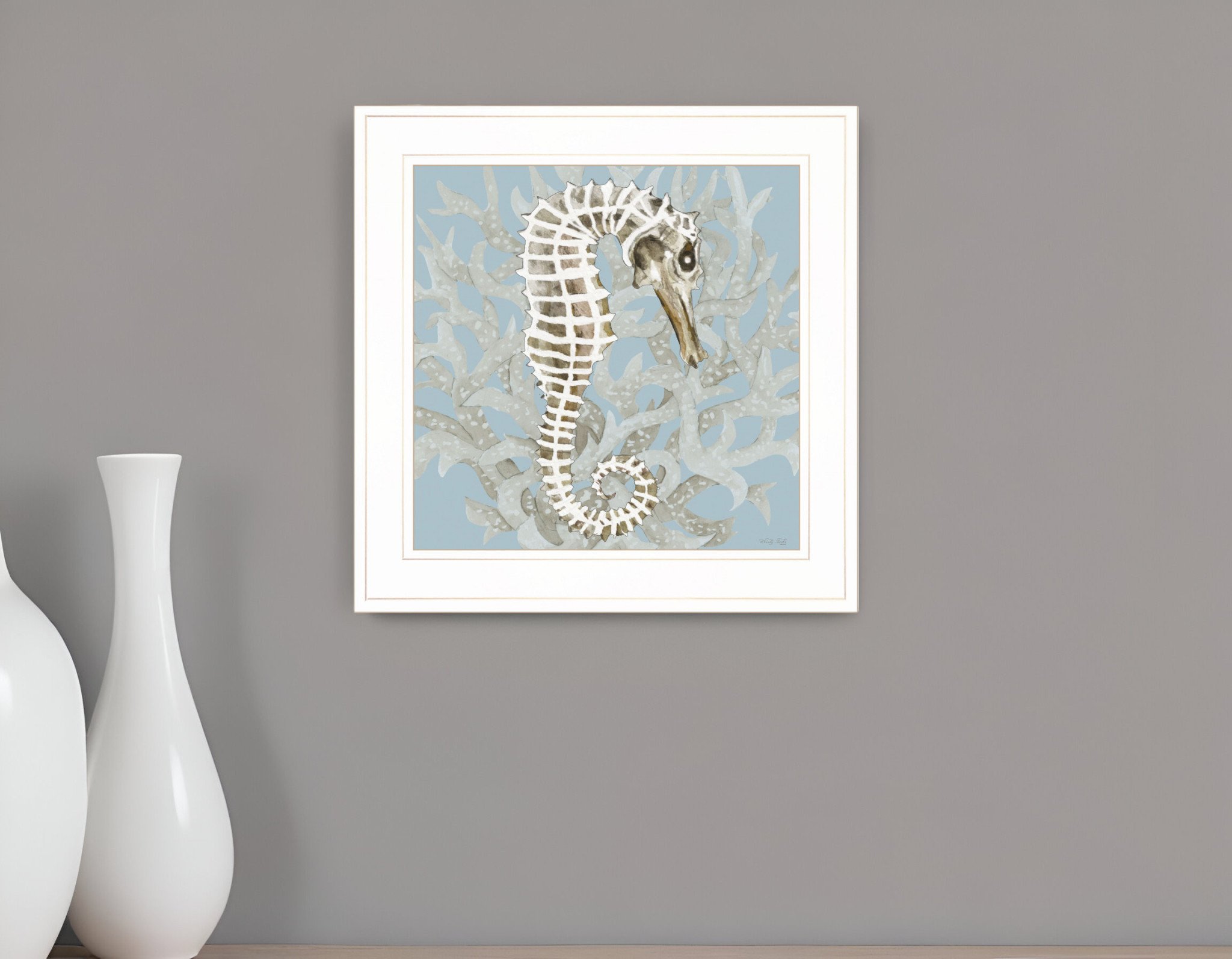 Add an air of fashion to your room and rejuvenate the space with this coral seahorse i 2 white framed print wall art. This print is a visual artistic expression that allows you to decorate your space in style. Reproduced for you on wood, this hanging decorative accent will be a trendy and fashionable way to dress your walls in a rustic and modern farmhouse vibe. Adding this hanging wall art to your space to make your room feel more finished and attractive. Utilize this opportunity to create a focal point in the room with this fabulous wall decor option. 15-inch H x 15-inch W x 1-inch D