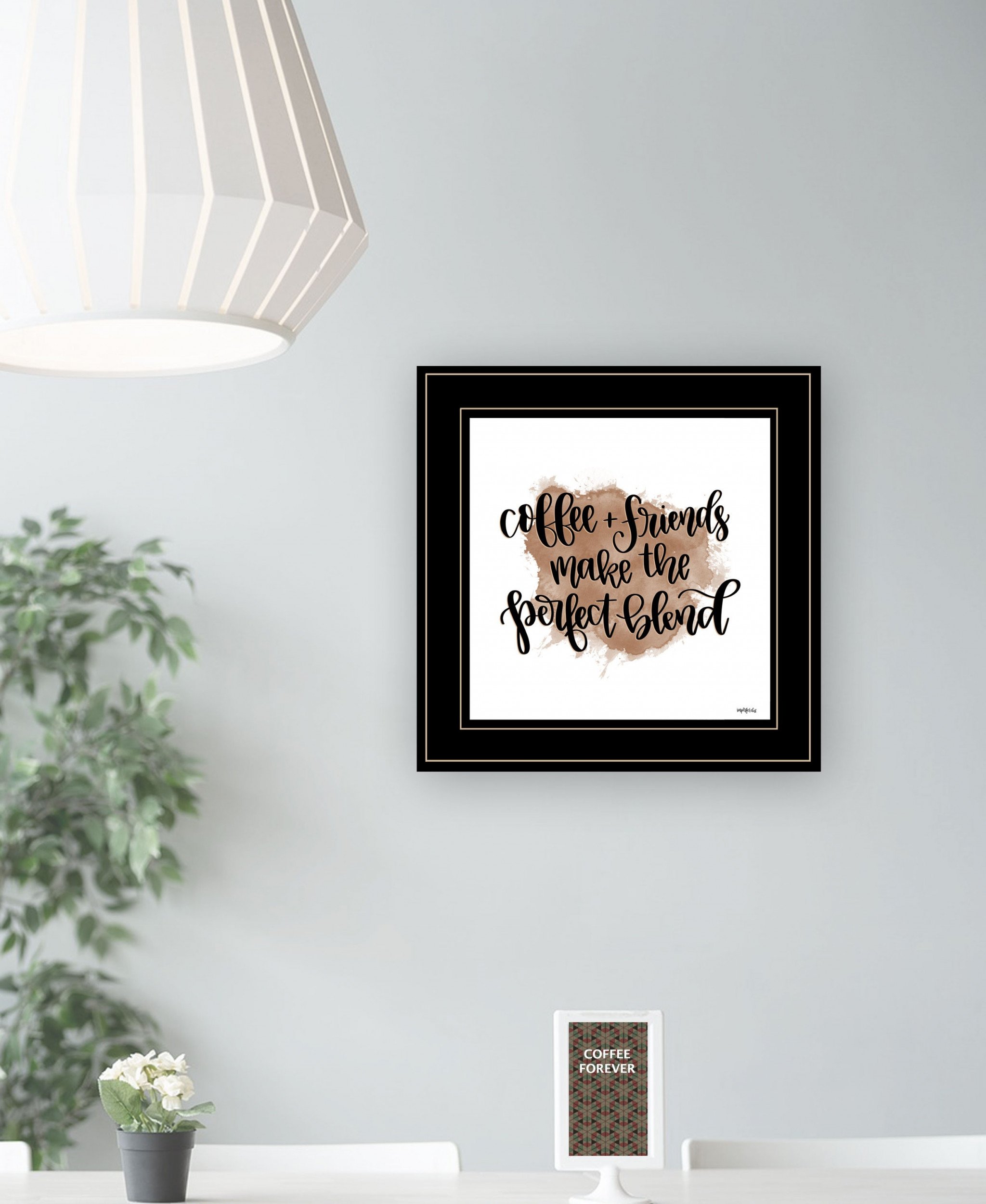 Add an air of fashion to your room and rejuvenate the space with this coffee and friends 3 black framed print wall art. This print is a visual artistic expression that allows you to decorate your space in style. Reproduced for you on wood, this hanging decorative accent will be a trendy and fashionable way to dress your walls in a rustic and modern farmhouse vibe. Adding this hanging wall art to your space to make your room feel more finished and attractive. Utilize this opportunity to create a focal point in the room with this fabulous wall decor option. 15-inch H x 15-inch W x 1-inch D