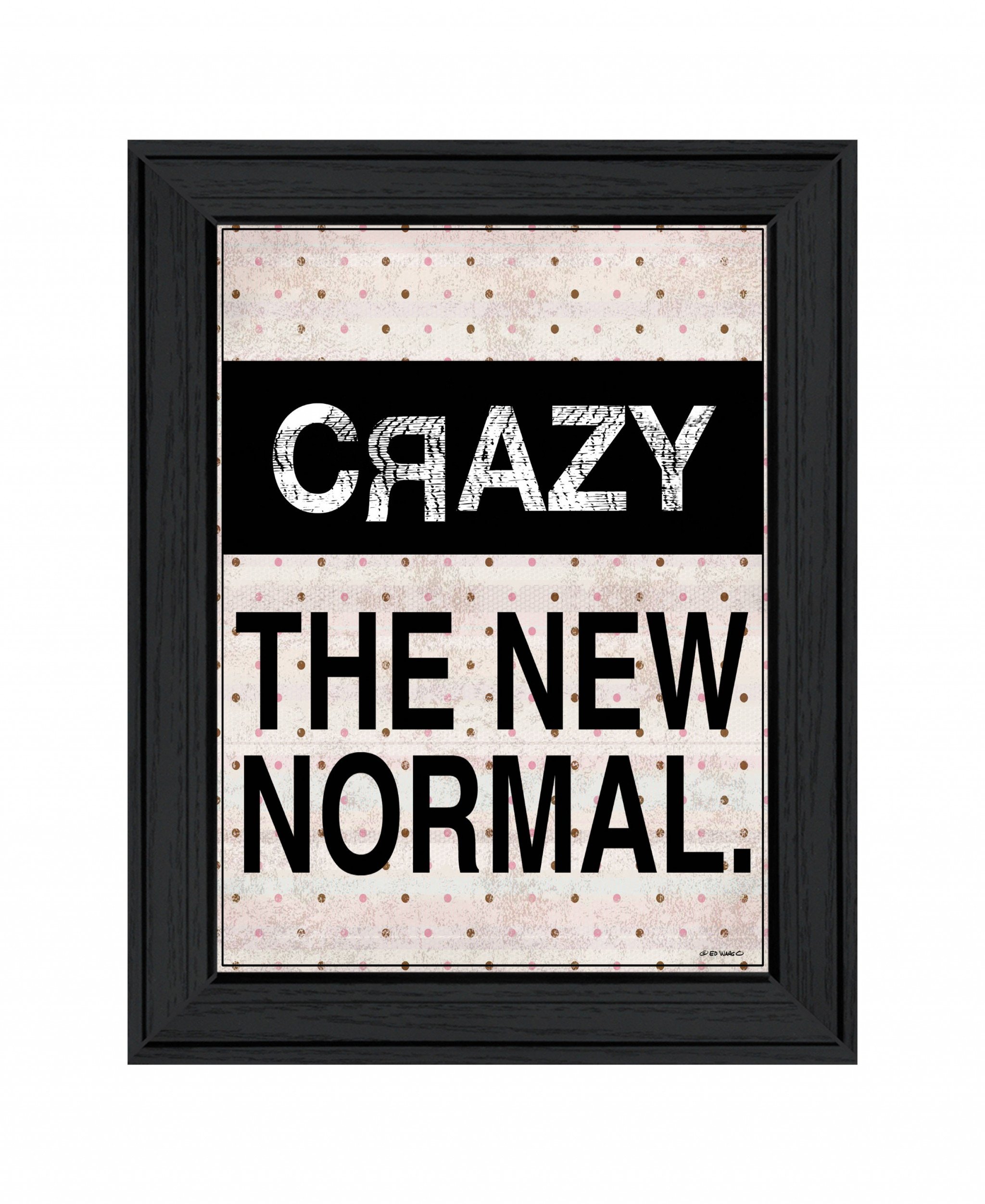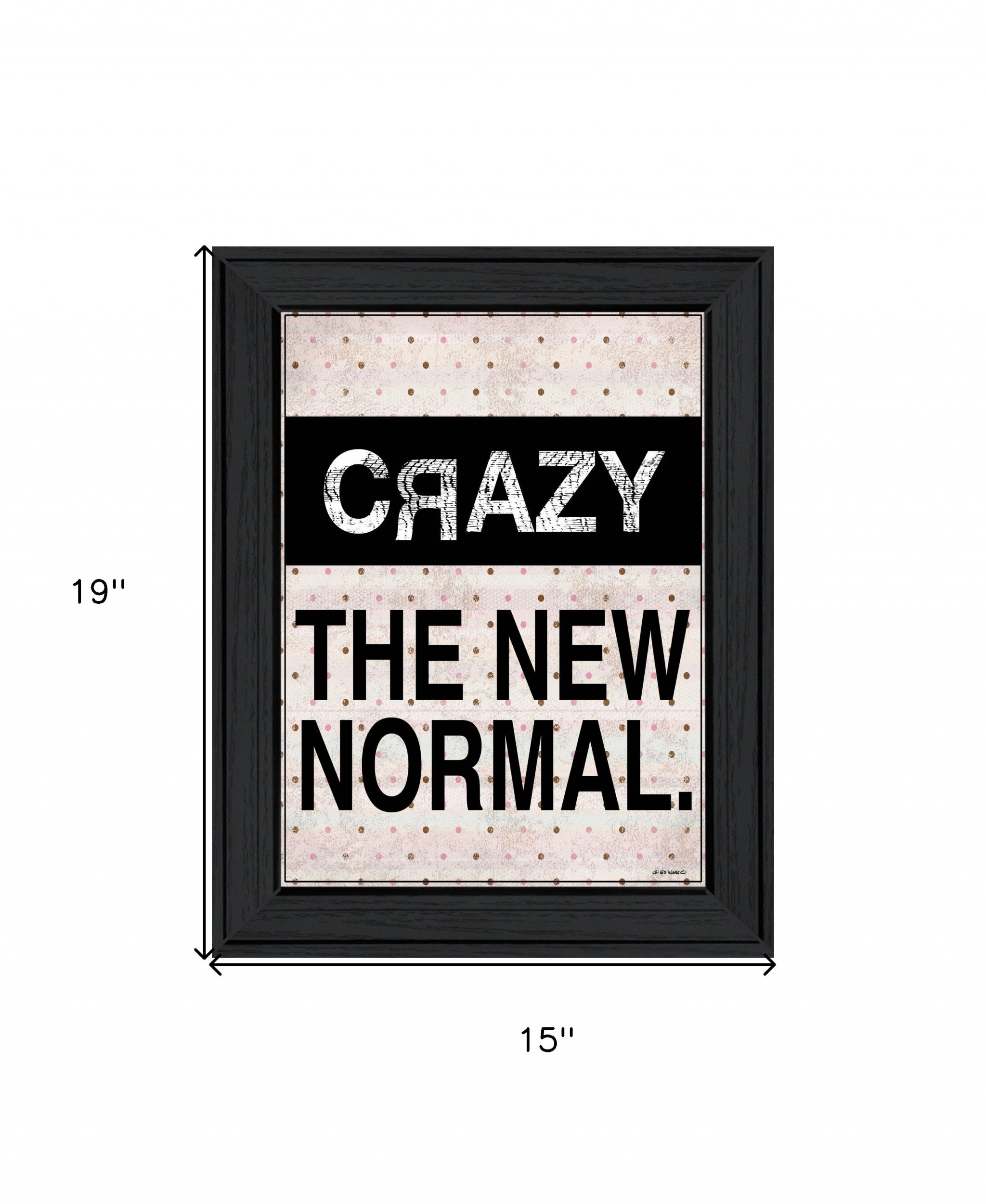 Bring some sizzle to your space with this eye-catching crazy the new normal 1 black framed print wall art. This print is a visual artistic expression that allows you to decorate your space in style. Reproduced for you on wood, this hanging decorative accent will be a trendy and fashionable way to dress your walls in a rustic and modern farmhouse vibe. Hang on your wall to add some up to date fashion and decoration. Utilize this opportunity to create a focal point in the room with this fabulous wall decor option. 19-inch H x 15-inch W x 1-inch D