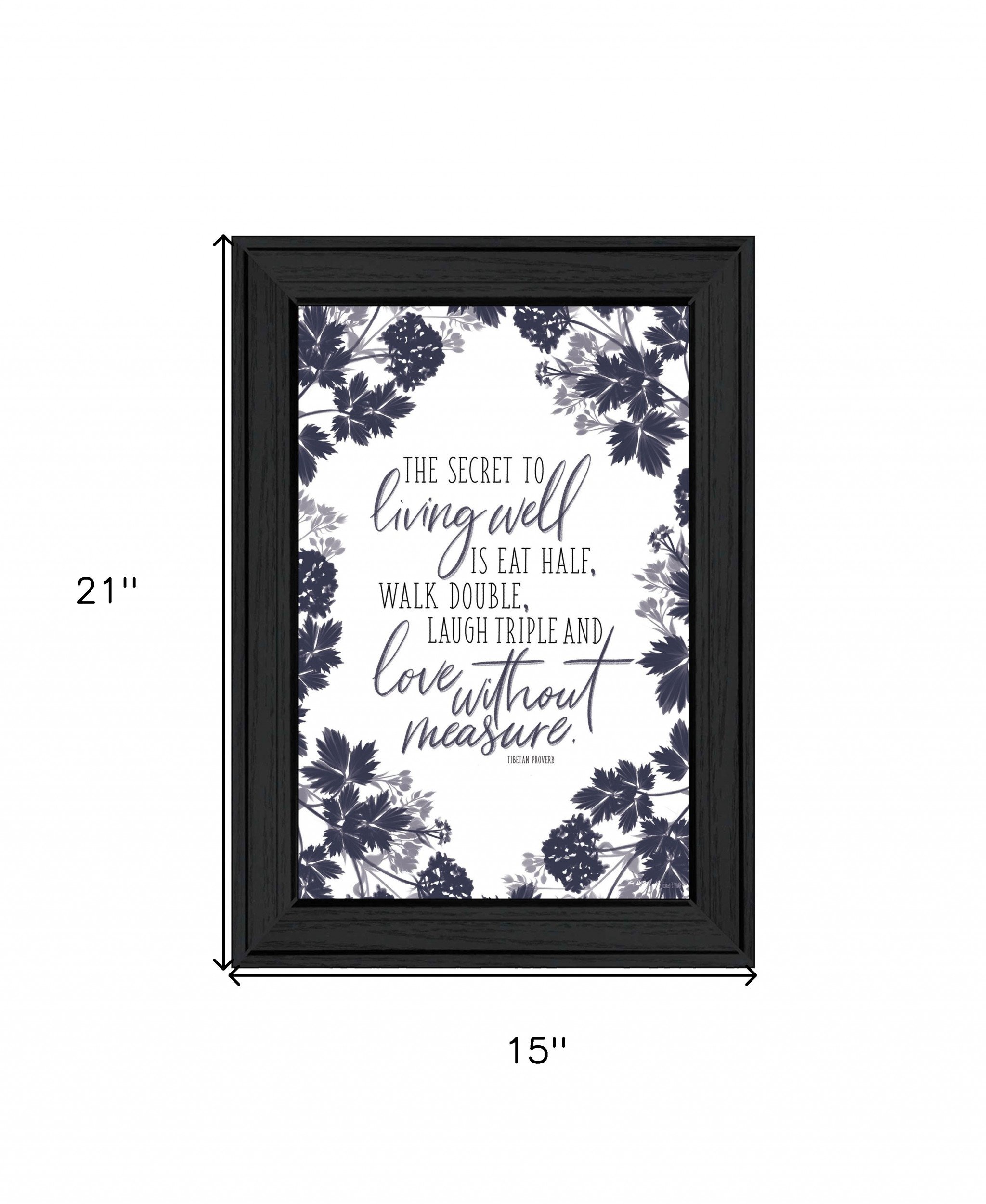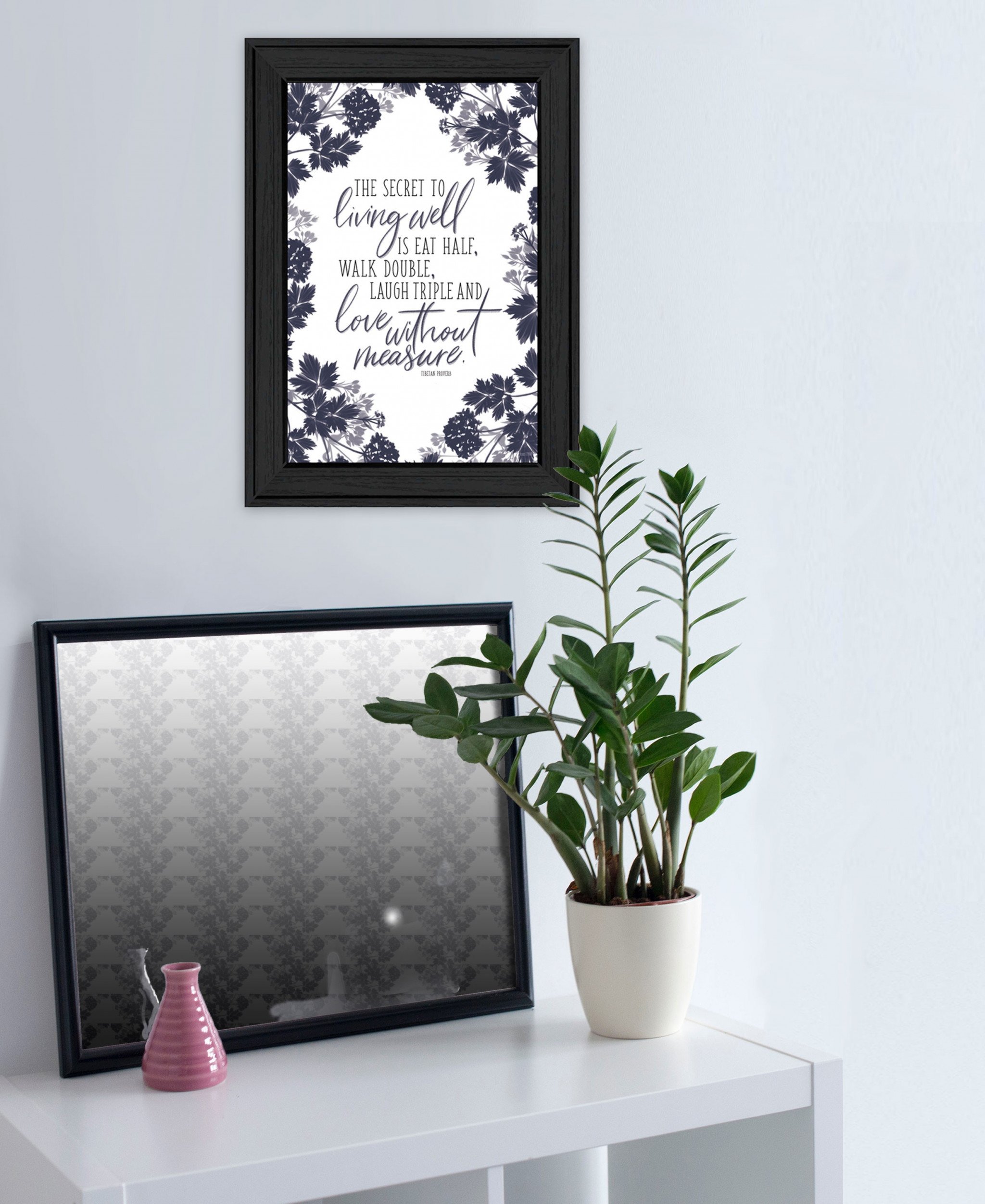 This the secret to living well 2 black framed print wall art will add a beautiful decorative accent to your decor. This print is a visual artistic expression that allows you to decorate your space in style. Reproduced for you on wood, this hanging decorative accent will be a trendy and fashionable way to dress your walls in a rustic and modern farmhouse vibe. Hang on your wall to add some up to date fashion and decoration. Utilize this opportunity to create a focal point in the room with this fabulous wall decor option. 21-inch H x 15-inch W x 1-inch D