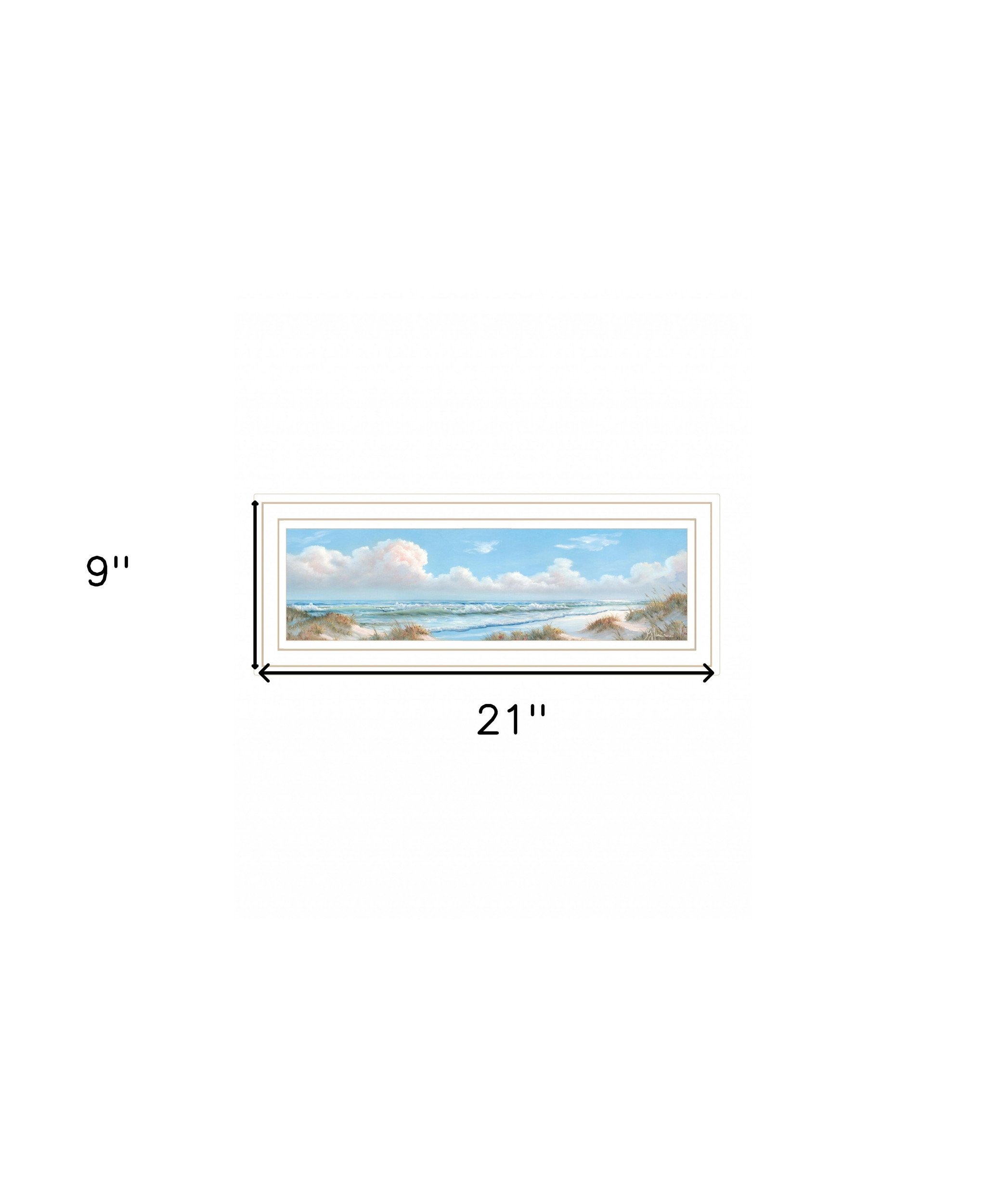 This seascape i 1 white framed print wall art will add a beautiful decorative accent to your decor. This print is a visual artistic expression that allows you to decorate your space in style. Reproduced for you on wood, this hanging decorative accent will be a trendy and fashionable way to dress your walls in a rustic and modern farmhouse vibe. Adding this hanging wall art to your space to make your room feel more finished and attractive. Utilize this opportunity to create a focal point in the room with this fabulous wall decor option. 9-inch H x 21-inch W x 1-inch D