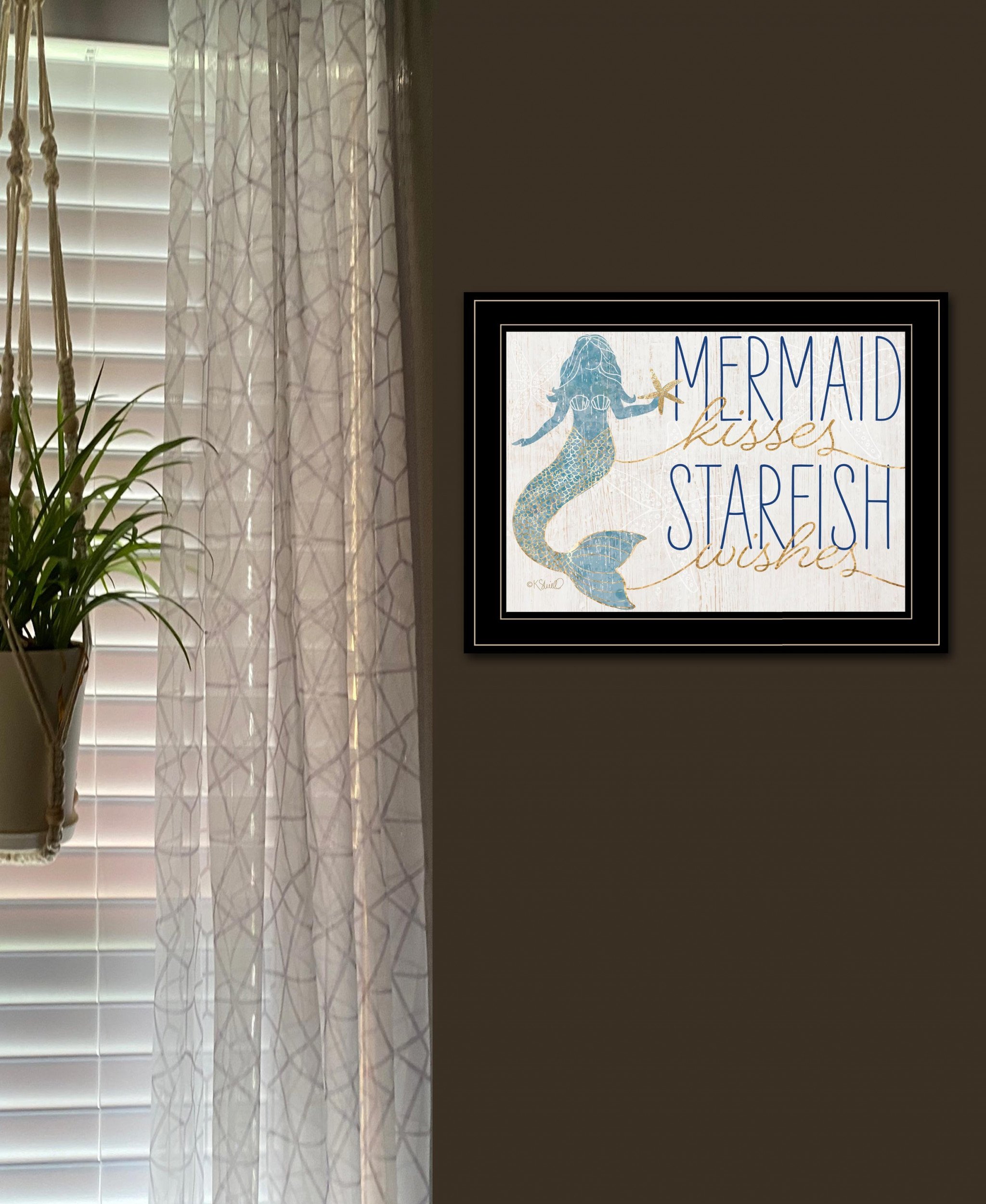 This mermaid kisses starfish wishes 3 black framed print wall art will add a beautiful decorative accent to your decor. This print is a visual artistic expression that allows you to decorate your space in style. Reproduced for you on wood, this hanging decorative accent will be a trendy and fashionable way to dress your walls in a rustic and modern farmhouse vibe. Adding this hanging wall art to your space to make your room feel more finished and attractive. Utilize this opportunity to create a focal point in the room with this fabulous wall decor option. 15-inch H x 19-inch W x 1-inch D