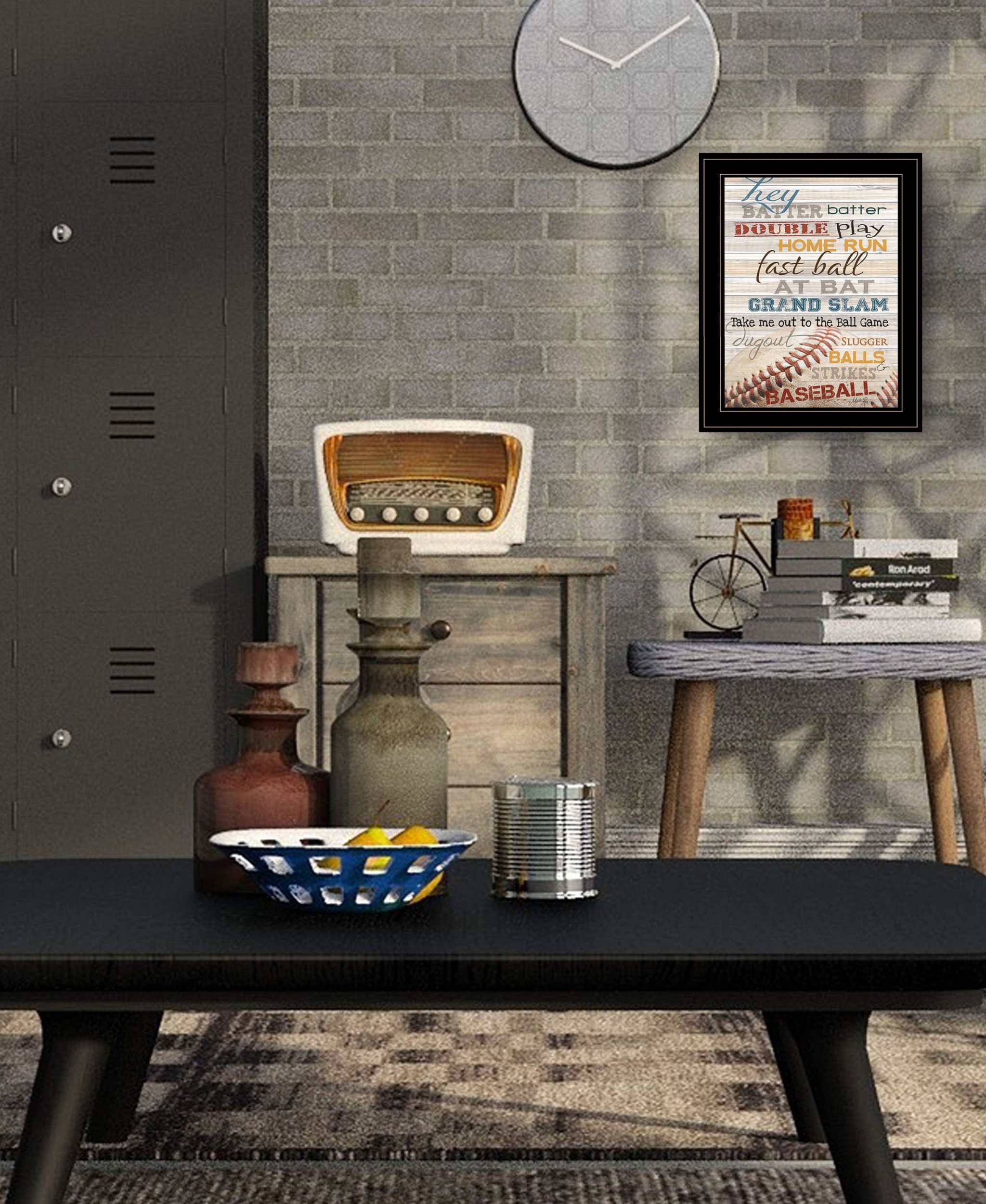 This hey batter batter 2 black framed print wall art will add a beautiful decorative accent to your decor. This print is a visual artistic expression that allows you to decorate your space in style. Reproduced for you on wood, this hanging decorative accent will be a trendy and fashionable way to dress your walls in a rustic and modern farmhouse vibe. Hang on your wall to add some up to date fashion and decoration. Instantly liven up your space with this art that brings color and dimension to your walls. 19-inch H x 15-inch W x 1-inch D