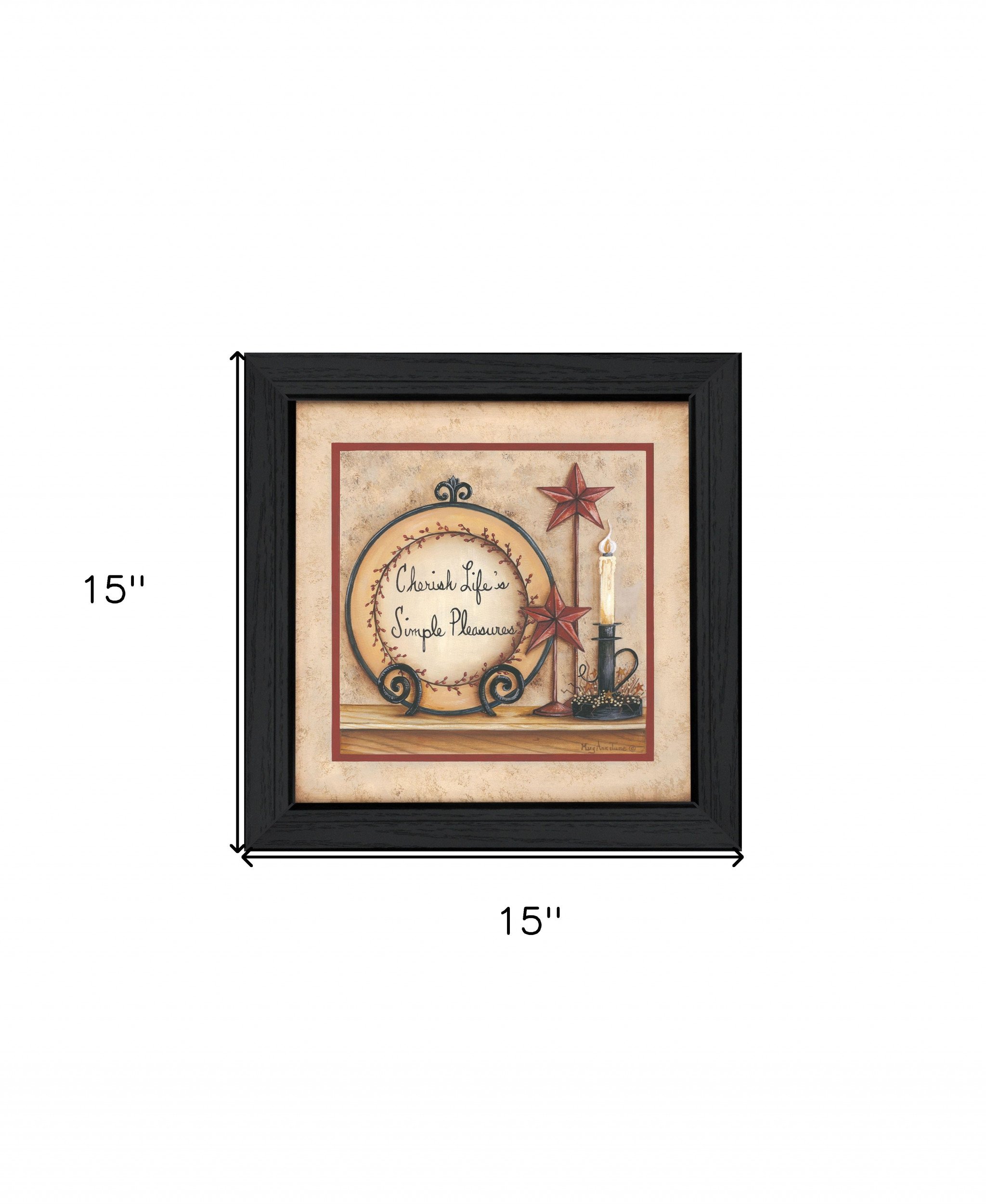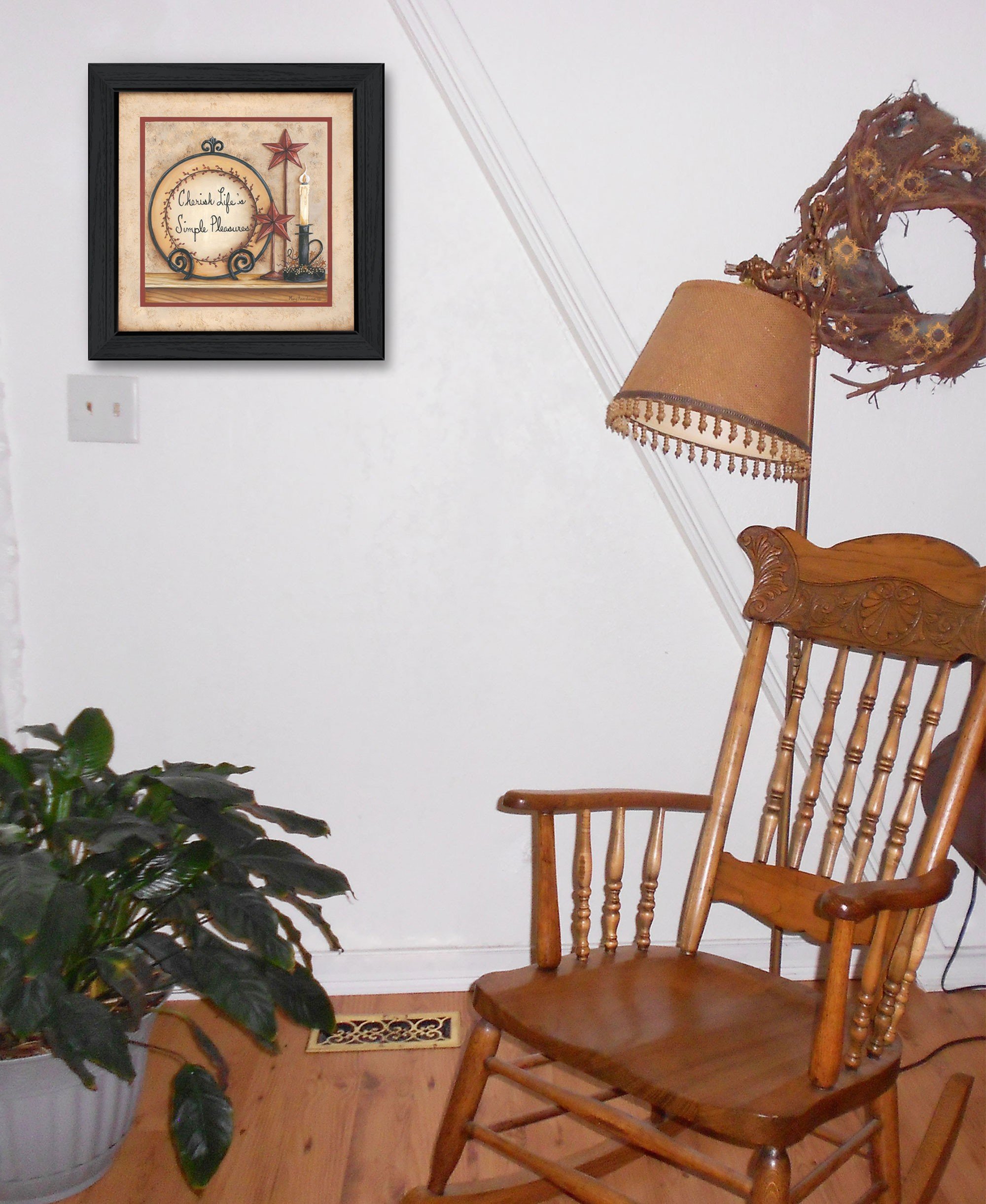 The simple pleasures 5 black framed print wall art is the perfect decorative accessory for your home. This print is a visual artistic expression that allows you to decorate your space in style. Reproduced for you on wood, this hanging decorative accent will be a trendy and fashionable way to dress your walls in a rustic and modern farmhouse vibe. Hang on your wall to add some up to date fashion and decoration. Utilize this opportunity to create a focal point in the room with this fabulous wall decor option. 15-inch H x 15-inch W x 1-inch D