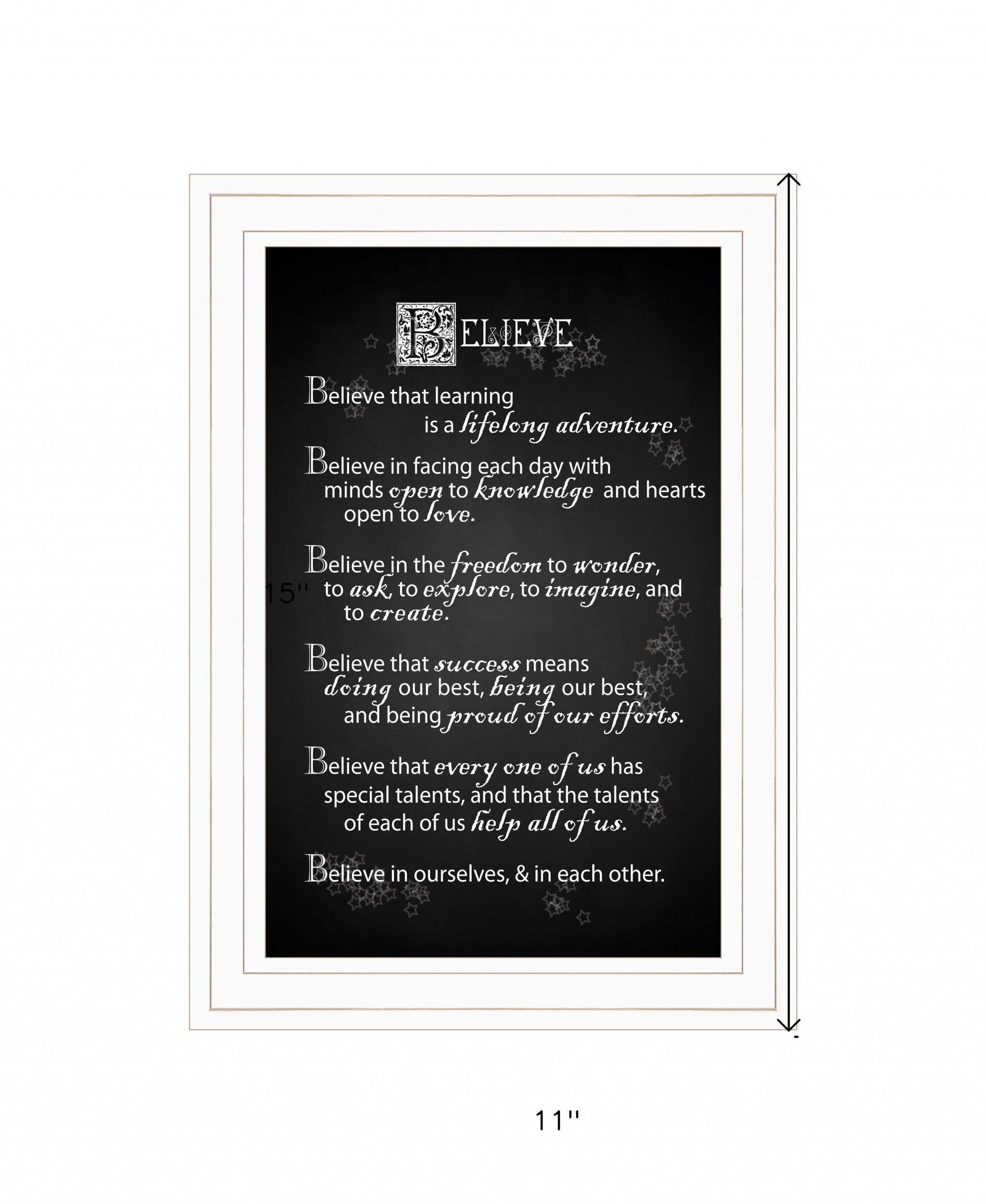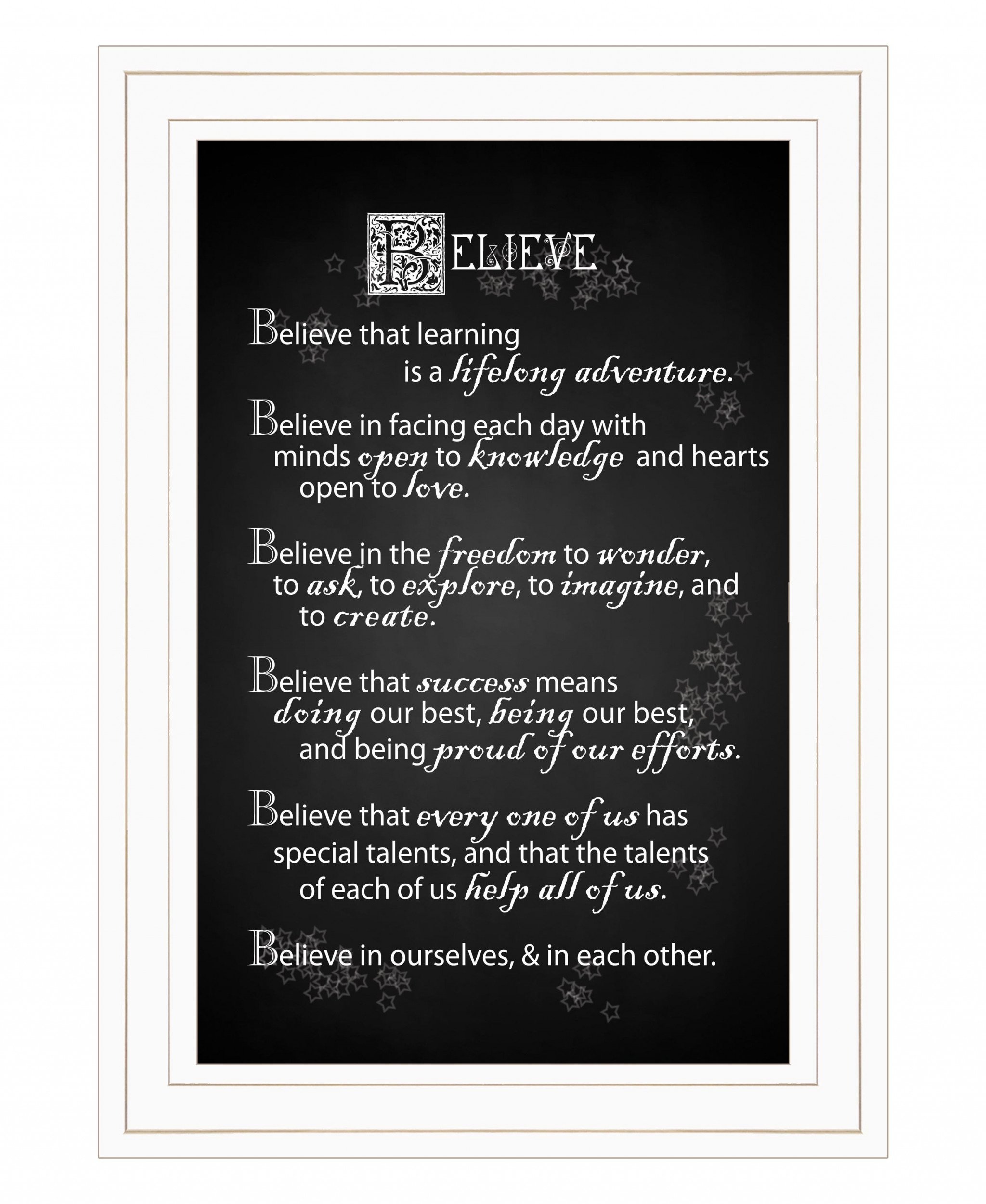 The believe 1 white framed print wall art is the perfect decorative accessory for your home. This print is a visual artistic expression that allows you to decorate your space in style. Reproduced for you on wood, this hanging decorative accent will be a trendy and fashionable way to dress your walls in a rustic and modern farmhouse vibe. Adding this hanging wall art to your space to make your room feel more finished and attractive. Instantly liven up your space with this art that brings color and dimension to your walls. 15-inch H x 11-inch W x 1-inch D