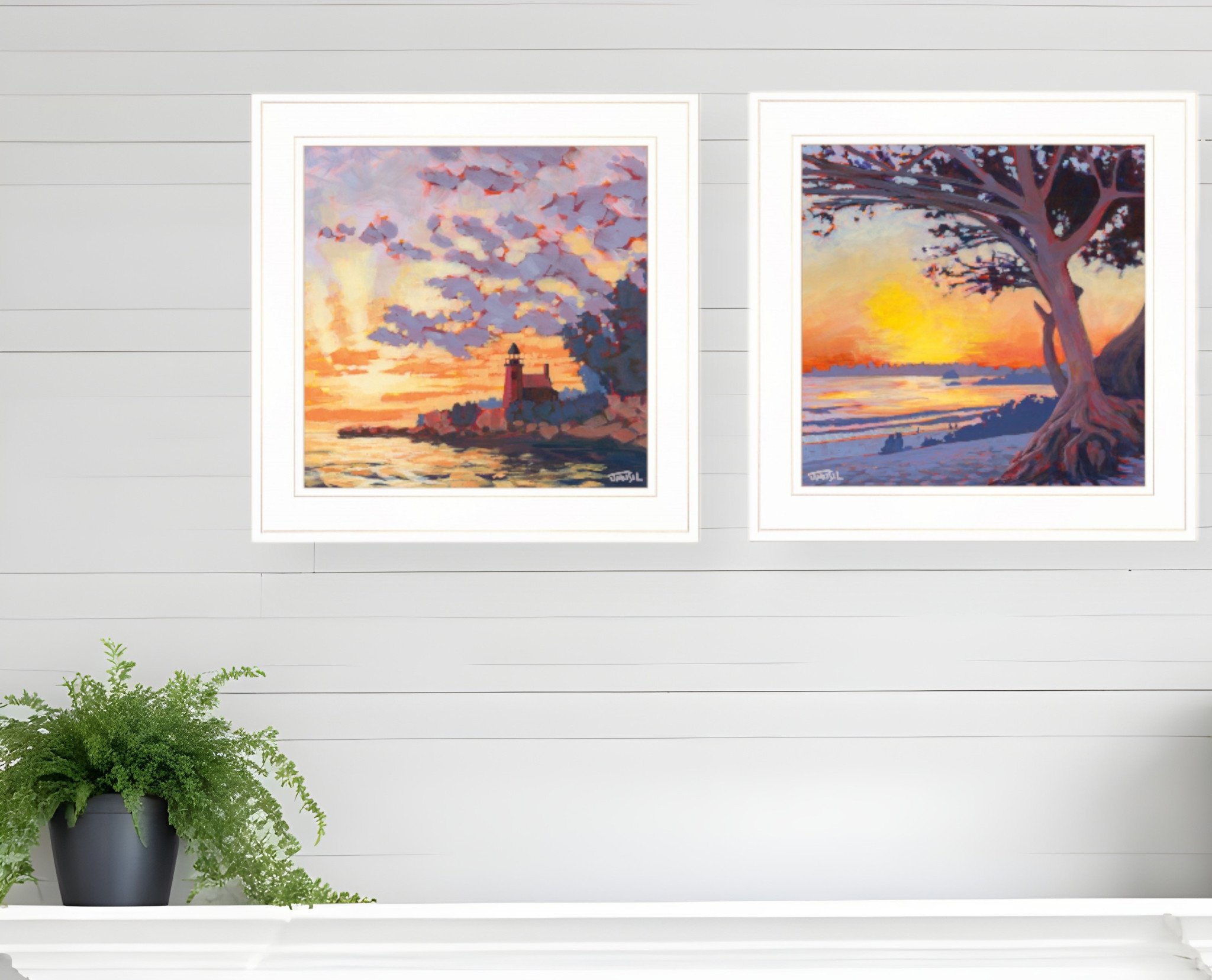 The set of two carmel beach and lighthouse 1 white framed print wall art is the perfect decorative accessory for your home. This print is a visual artistic expression that allows you to decorate your space in style. Reproduced for you on wood, this hanging decorative accent will be a trendy and fashionable way to dress your walls in a rustic and modern farmhouse vibe. Adding this hanging wall art to your space to make your room feel more finished and attractive. Utilize this opportunity to create a focal point in the room with this fabulous wall decor option. 31-inch H x 15-inch W x 1-inch D