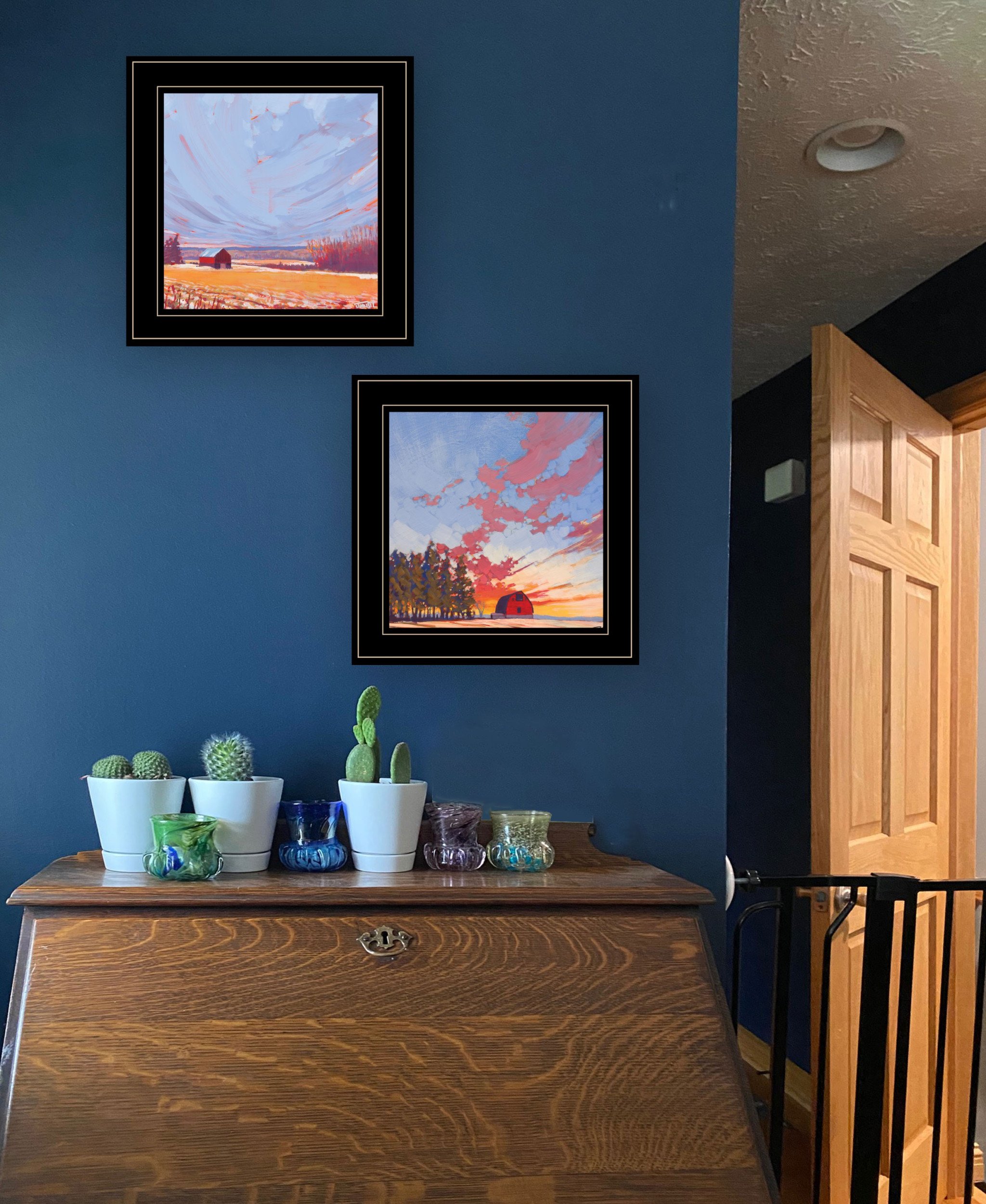 Set Of Two Scenic Landscapes With Barns Black Framed Print Wall Art