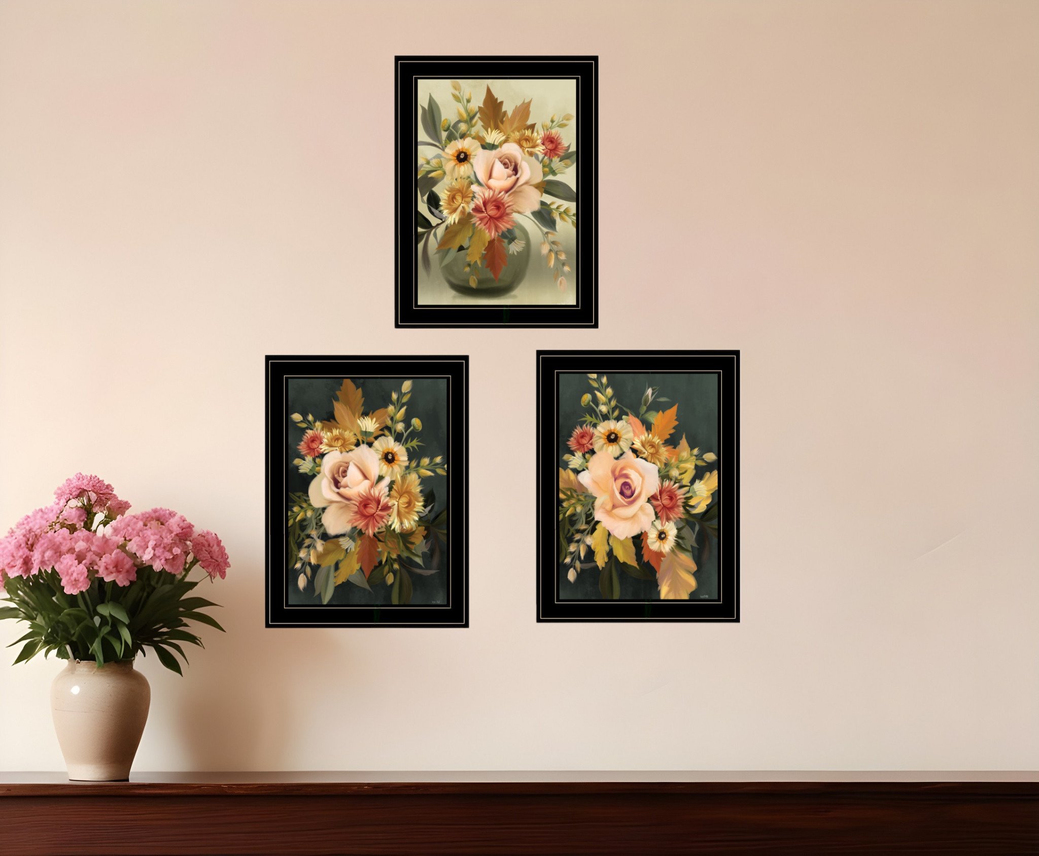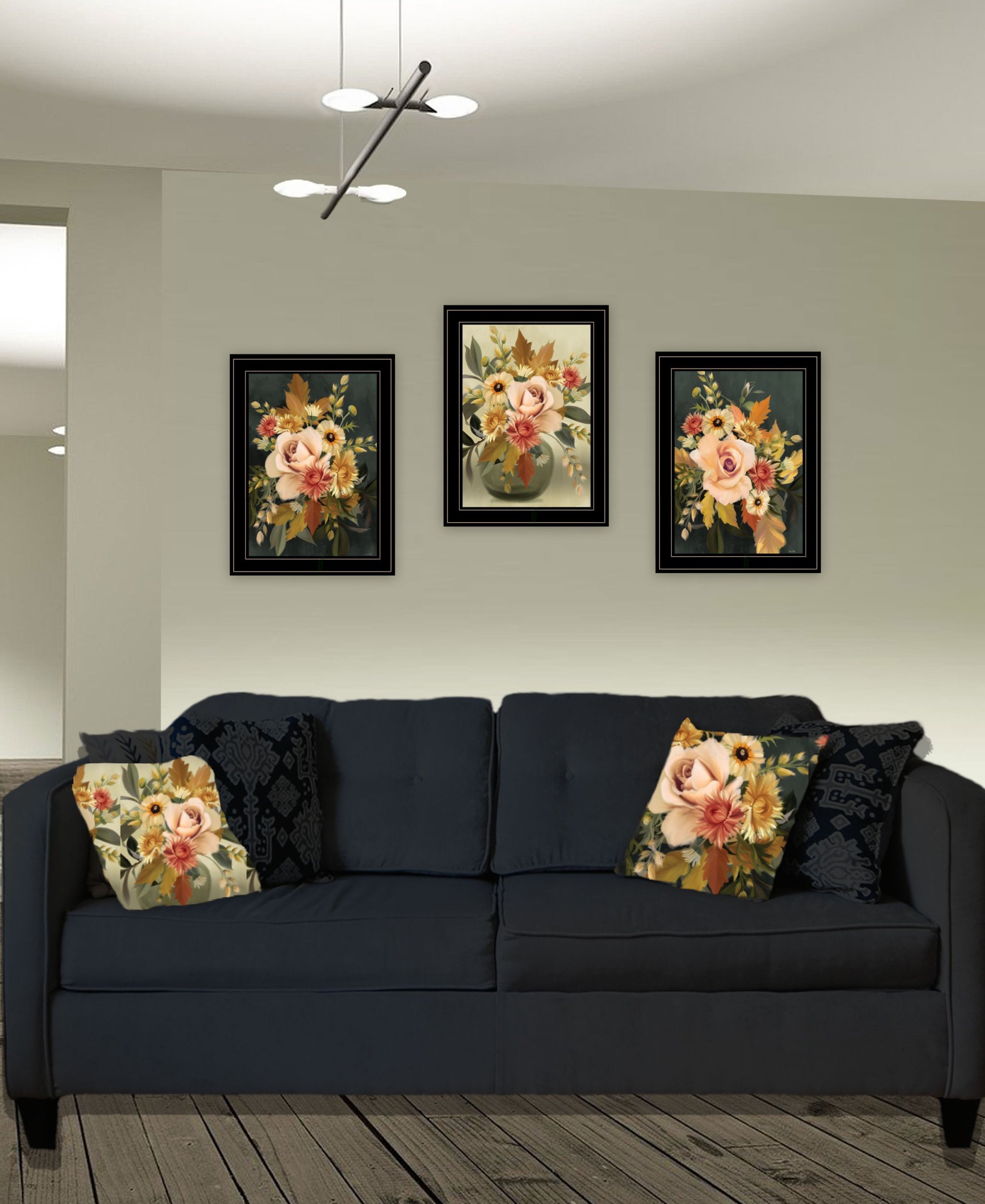 Bring some sizzle to your space with this eye-catching set of three romantic autumn black framed print wall art. This print is a visual artistic expression that allows you to decorate your space in style. Reproduced for you on wood, this hanging decorative accent will be a trendy and fashionable way to dress your walls in a rustic and modern farmhouse vibe. Hang on your wall to add some up to date fashion and decoration. Utilize this opportunity to create a focal point in the room with this fabulous wall decor option. 39-inch H x 31-inch W x 1-inch D