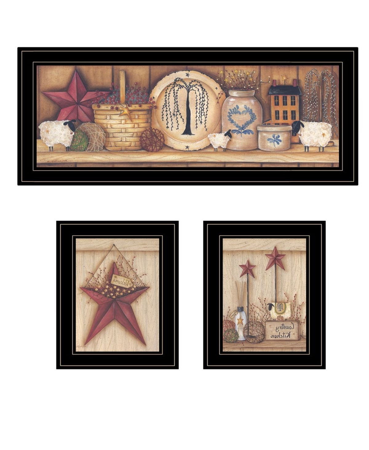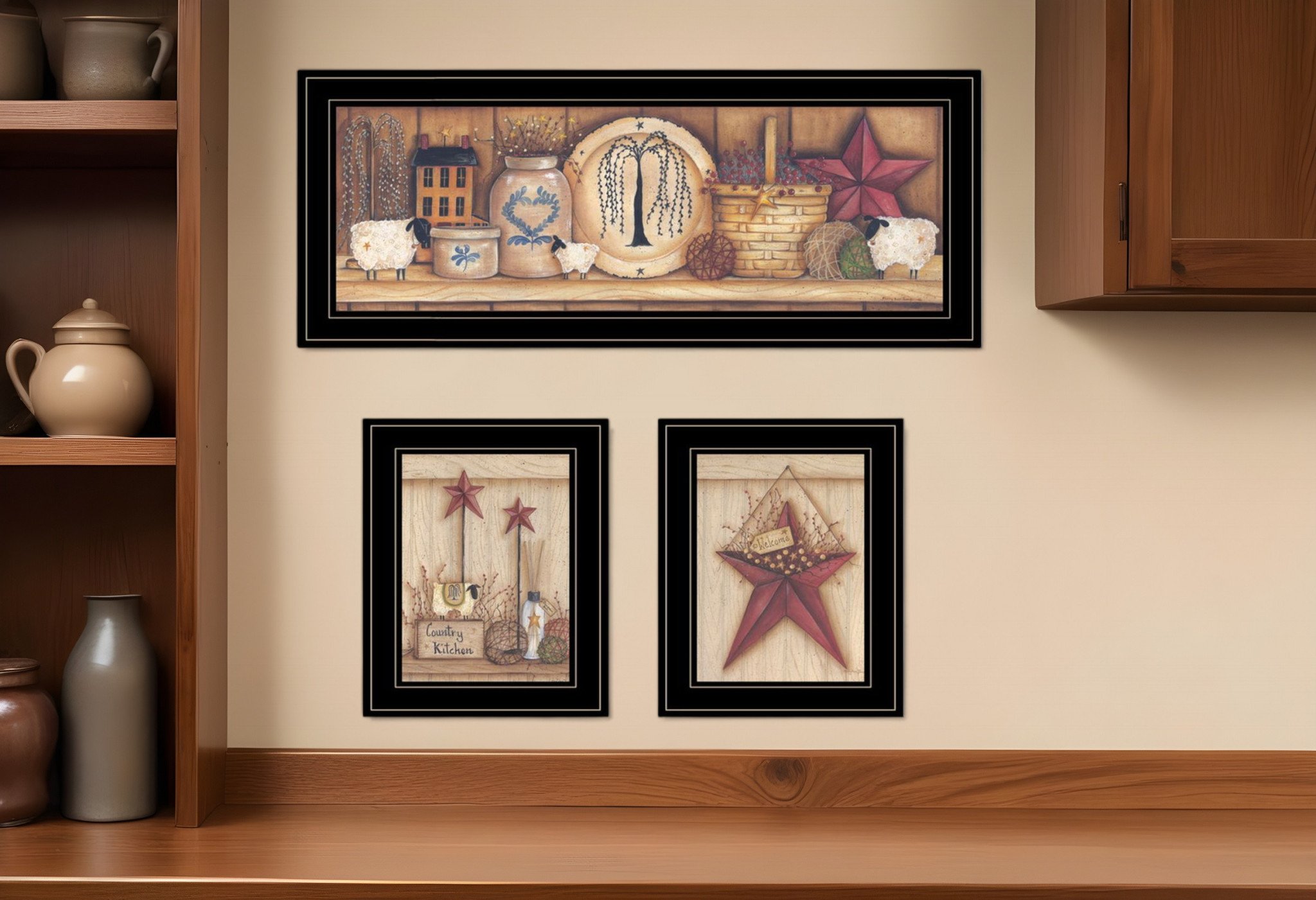 Bring some sizzle to your space with this eye-catching set of three country shelf and stars black framed print wall art. This print is a visual artistic expression that allows you to decorate your space in style. Reproduced for you on wood, this hanging decorative accent will be a trendy and fashionable way to dress your walls in a rustic and modern farmhouse vibe. Hang on your wall to add some up to date fashion and decoration. Utilize this opportunity to create a focal point in the room with this fabulous wall decor option. 31-inch H x 33-inch W x 1-inch D
