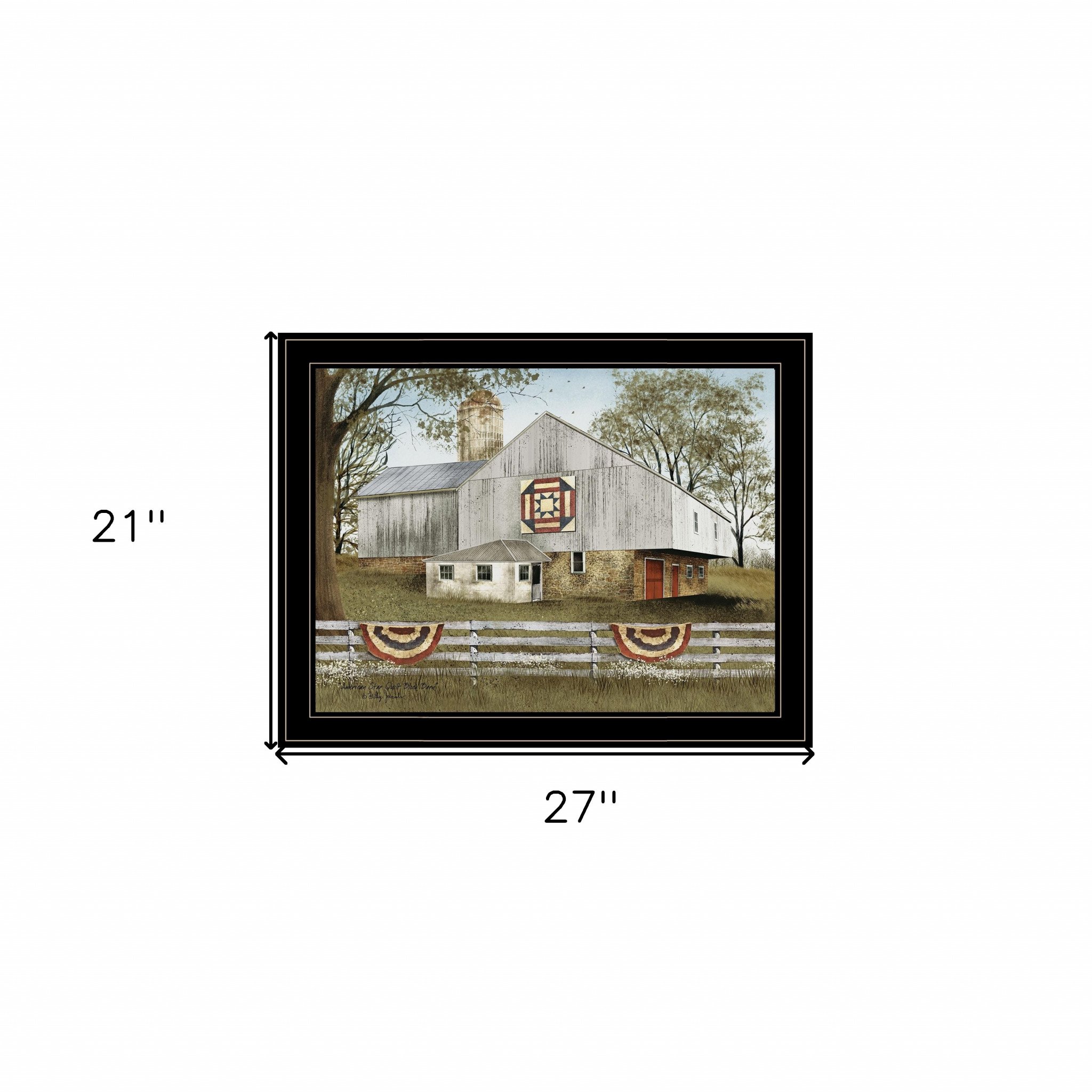 Unique and decorative, this american star quilt block barn 4 black framed print wall art will leave a lasting impression. This print is a visual artistic expression that allows you to decorate your space in style. Reproduced for you on paper, this hanging decorative accent will be a trendy and fashionable way to dress your walls. Hang on your wall to add some up to date fashion and decoration. Utilize this opportunity to create a focal point in the room with this fabulous wall decor option. 21-inch H x 27-inch W x 1-inch D