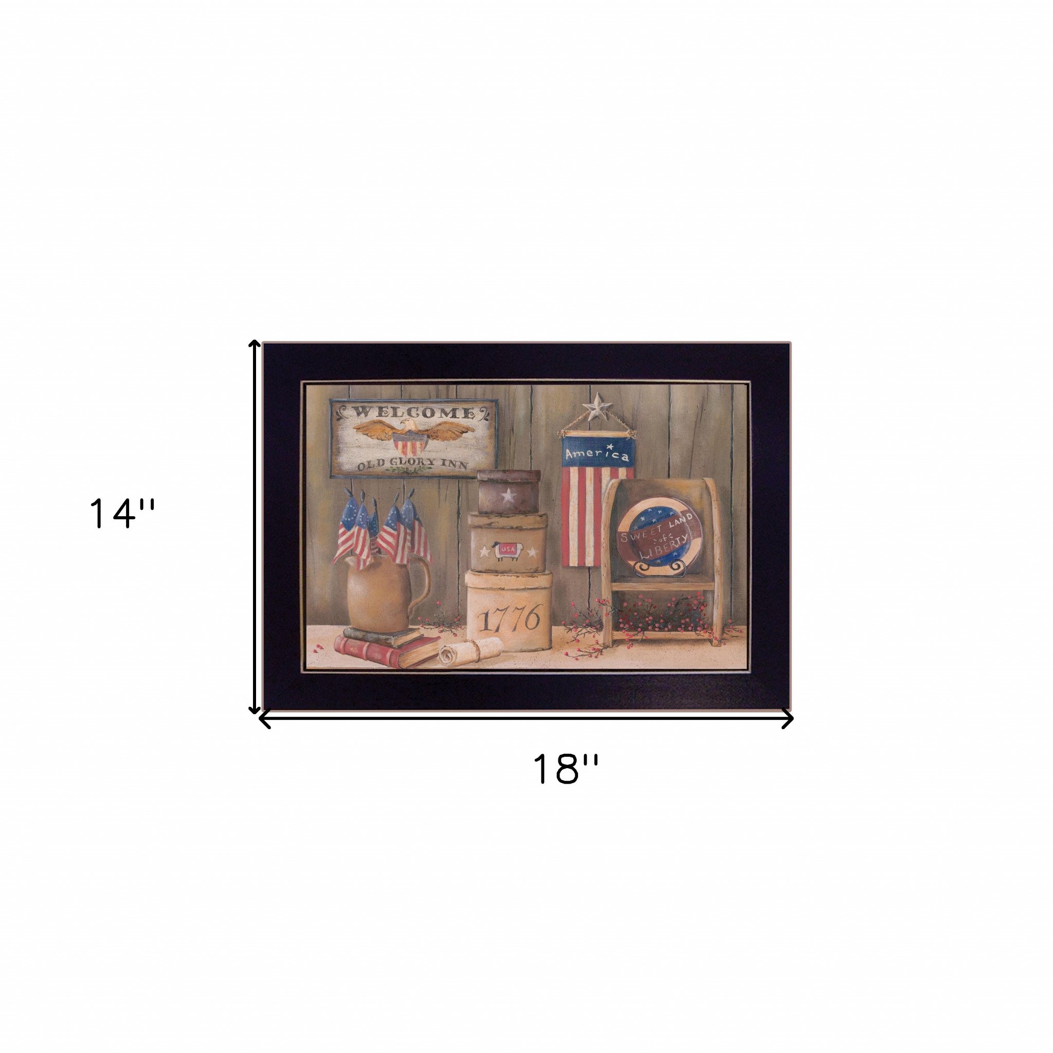The sweet land of liberty 1 black framed print wall art is the perfect decorative accessory for your home. This print is a visual artistic expression that allows you to decorate your space in style. Reproduced for you on paper, this hanging decorative accent will be a trendy and fashionable way to dress your walls. Adding this hanging wall art to your space to make your room feel more finished and attractive. Utilize this opportunity to create a focal point in the room with this fabulous wall decor option. 14-inch H x 18-inch W x 1-inch D