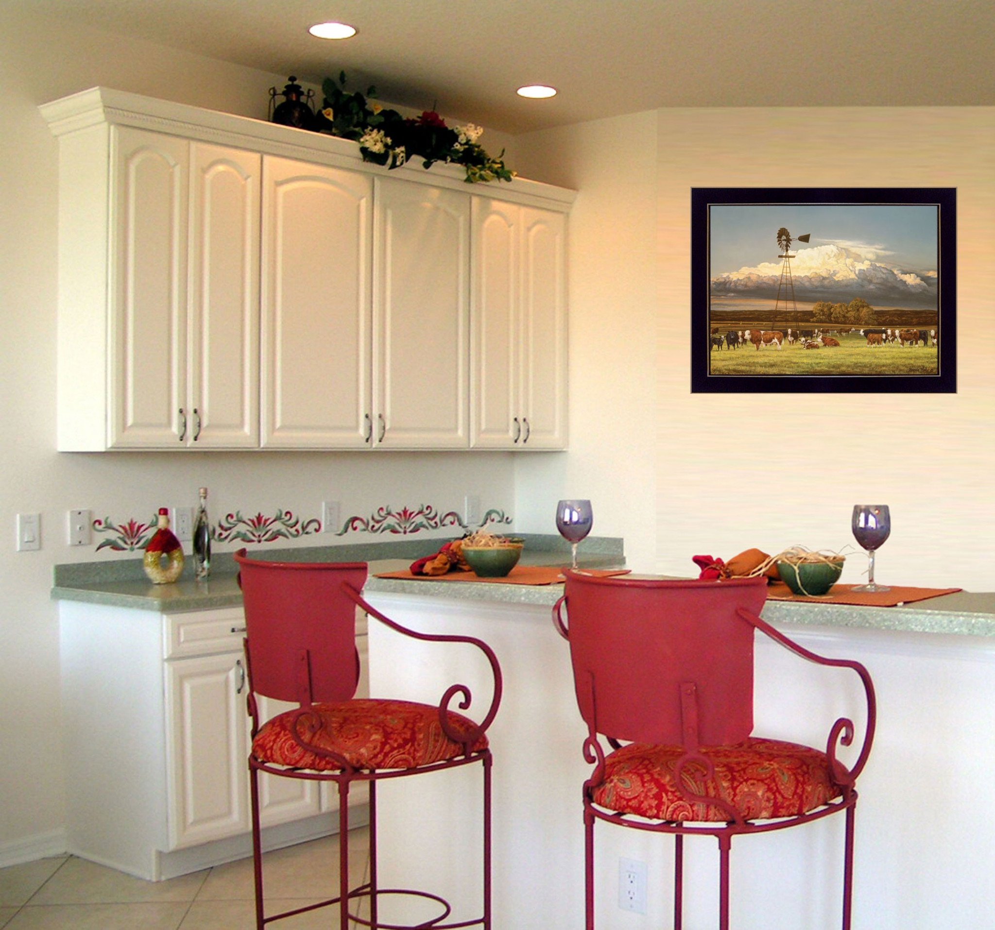 Unique and decorative, this summer pastures black framed print wall art will leave a lasting impression. Bring a little bit of the farm indoors when you hang this cow artwork. This print is a visual artistic expression that allows you to decorate your space in style. Reproduced for you on paper, this hanging decorative accent will be a trendy and fashionable way to dress your walls. Hang on your wall to add some up to date fashion and decoration. Instantly liven up your space with this art that brings color and dimension to your walls. 14-inch H x 18-inch W x 1-inch D