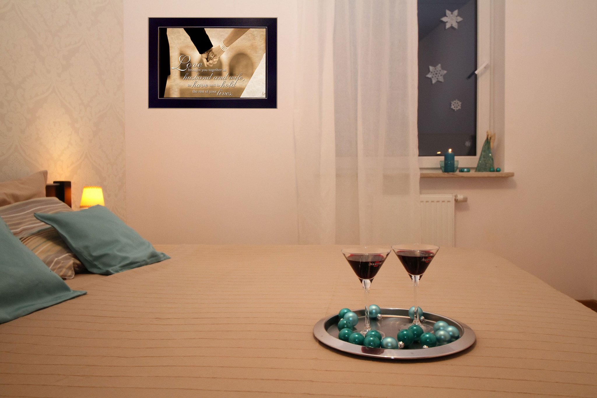 Bring some sizzle to your space with this eye-catching to have and to hold 1 black framed print wall art. This print is a visual artistic expression that allows you to decorate your space in style. Reproduced for you on paper, this hanging decorative accent will be a trendy and fashionable way to dress your walls. Adding this hanging wall art to your space to make your room feel more finished and attractive. Utilize this opportunity to create a focal point in the room with this fabulous wall decor option. 10-inch H x 14-inch W x 1-inch D