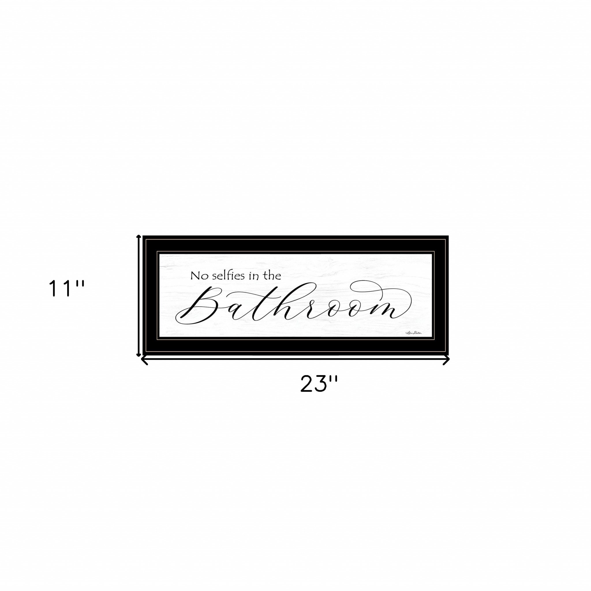 This no selfies in the bathroom 3 black framed print bathroom wall art will add a beautiful decorative accent to your decor. This print is a visual artistic expression that allows you to decorate your space in style. Reproduced for you on paper, this hanging decorative accent will be a trendy and fashionable way to dress your walls. Hang on your wall to add some up to date fashion and decoration. Utilize this opportunity to create a focal point in the room with this fabulous wall decor option. 11-inch H x 23-inch W x 1-inch D