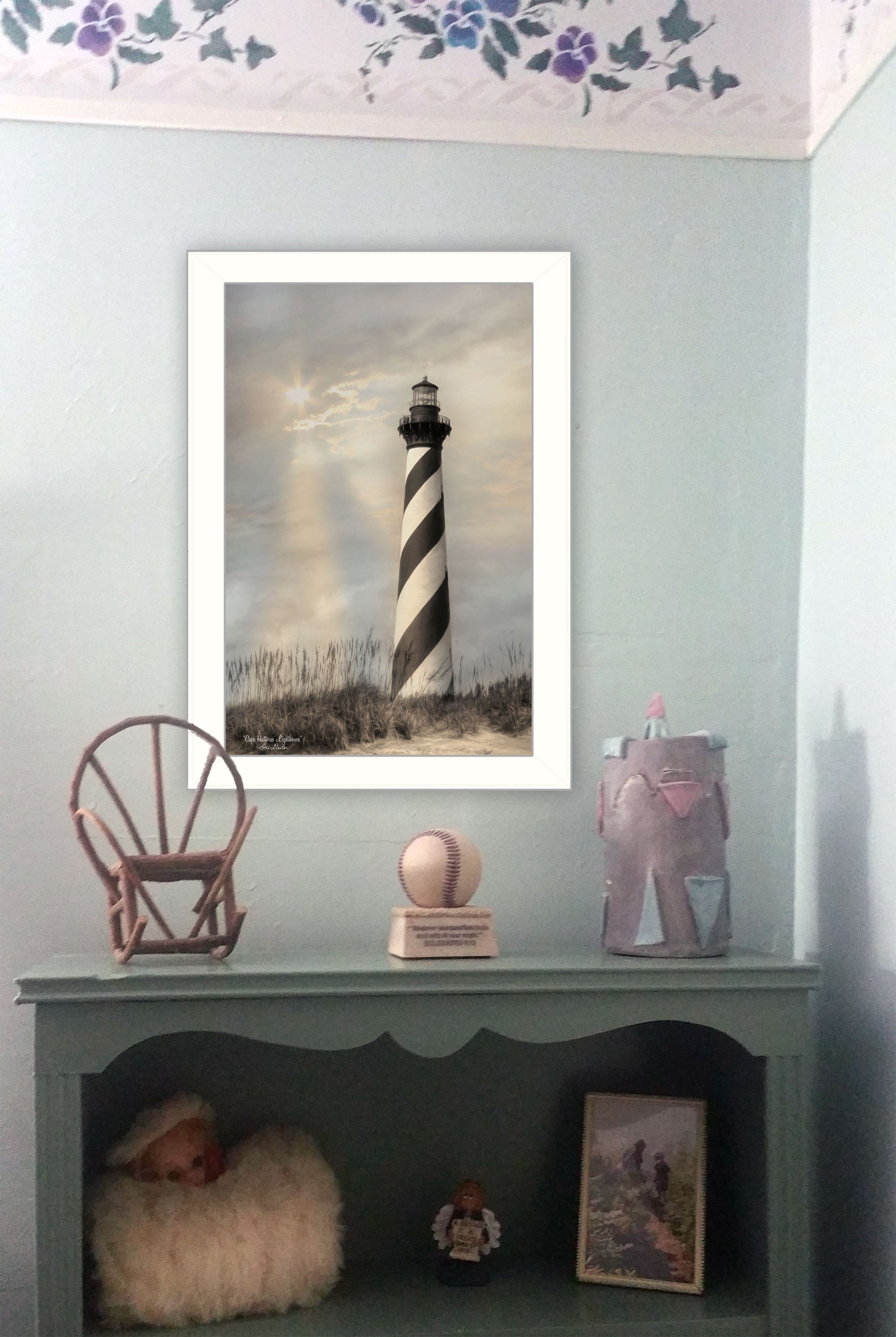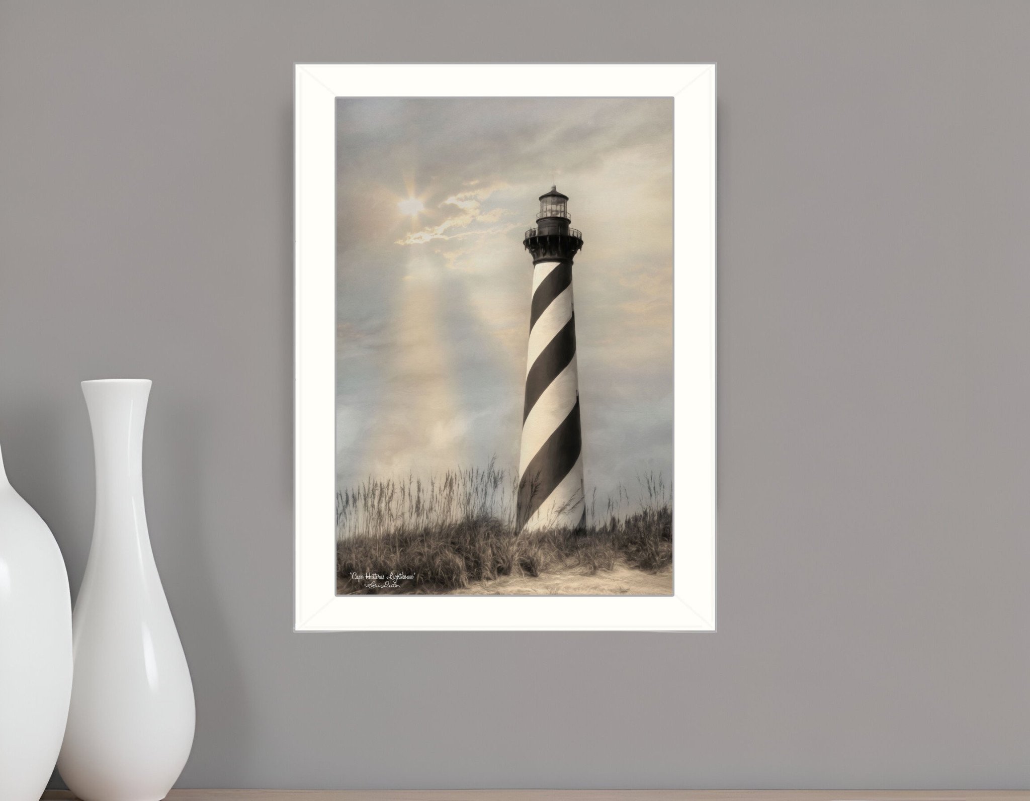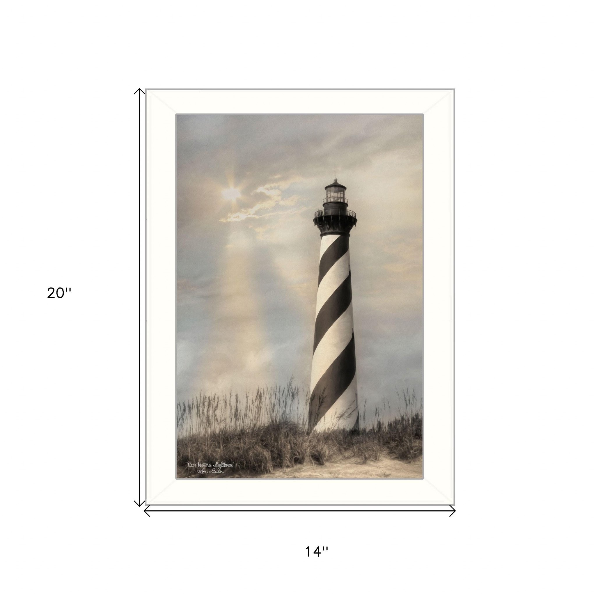 Add an air of fashion to your room and rejuvenate the space with this cape hatteras lighthouse 2 white framed print wall art. This print is a visual artistic expression that allows you to decorate your space in style. Reproduced for you on paper, this hanging decorative accent will be a trendy and fashionable way to dress your walls. Hang on your wall to add some up to date fashion and decoration. Utilize this opportunity to create a focal point in the room with this fabulous wall decor option. 20-inch H x 14-inch W x 1-inch D