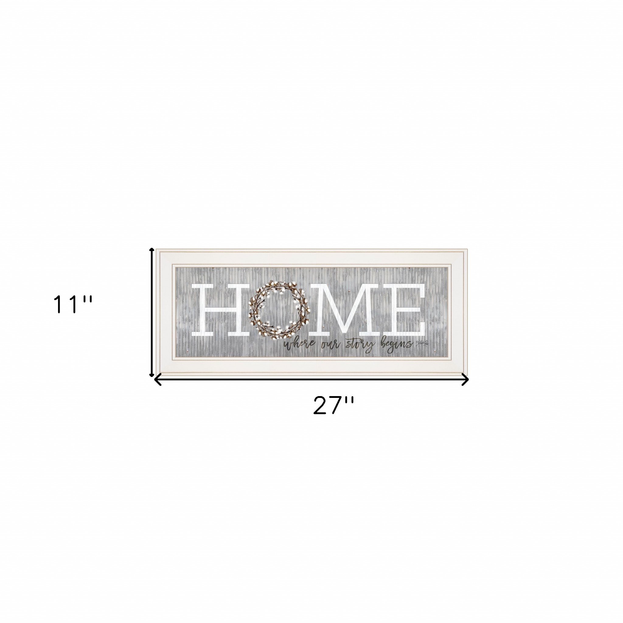 The home where our story begins white framed print wall art is the perfect decorative accessory for your home. This print is a visual artistic expression that allows you to decorate your space in style. Reproduced for you on paper, this hanging decorative accent will be a trendy and fashionable way to dress your walls. Hang on your wall to add some up to date fashion and decoration. Instantly liven up your space with this art that brings color and dimension to your walls. 11-inch H x 27-inch W x 1-inch D