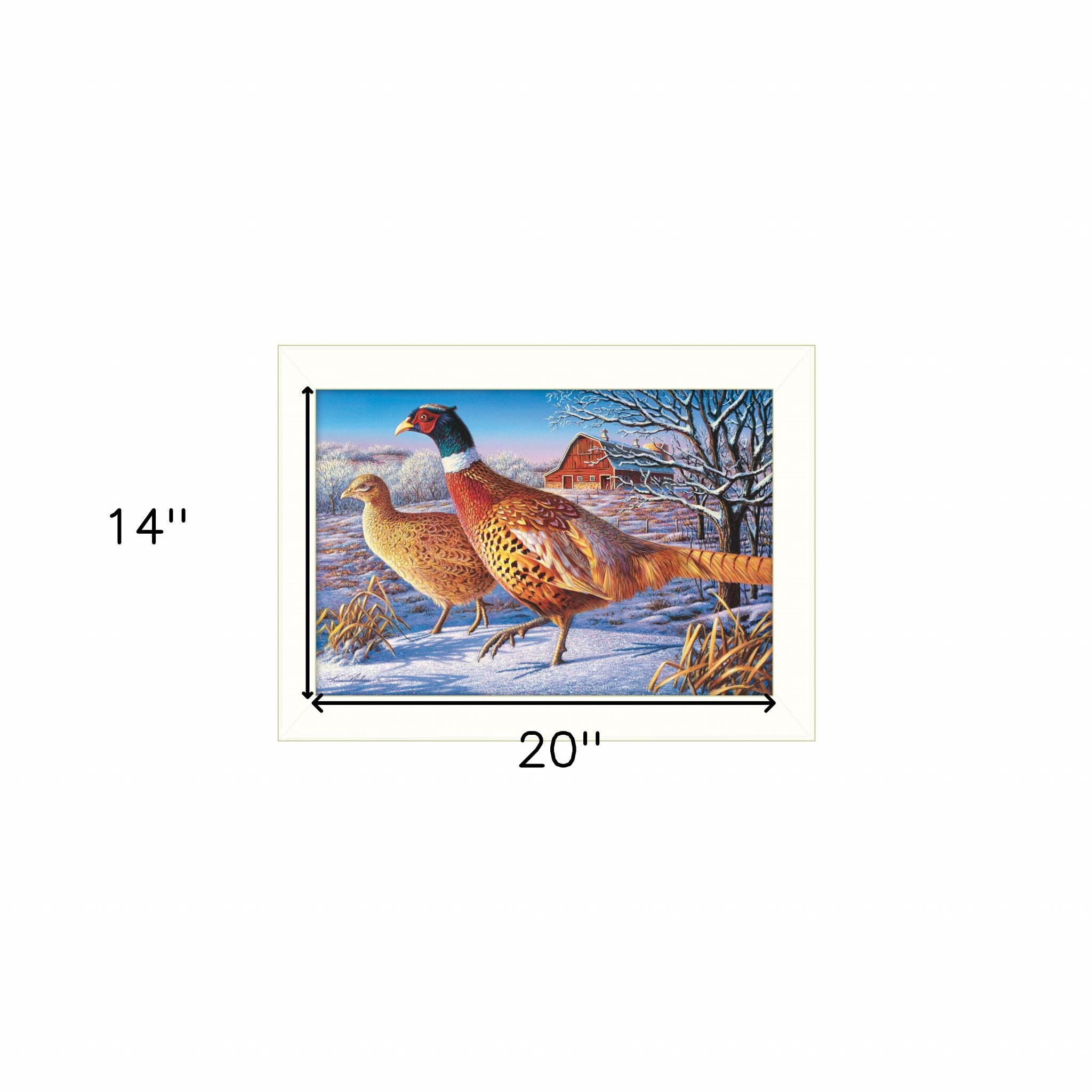 Unique and decorative, this frosty morning ringnecks 2 white framed print wall art will leave a lasting impression. Inspired by one of nature's most revered icons, this pretty bird inspired artwork will be a beautiful and special addition to your room's decor. This print is a visual artistic expression that allows you to decorate your space in style. Reproduced for you on paper, this hanging decorative accent will be a trendy and fashionable way to dress your walls. Adding this hanging wall art to your space to make your room feel more finished and attractive. Instantly liven up your space with this art that brings color and dimension to your walls. 14-inch H x 20-inch W x 1-inch D