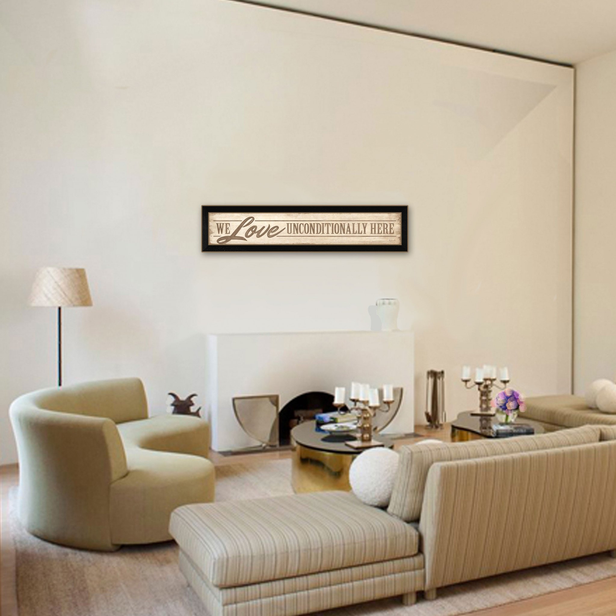 This love unconditionally 2 black framed print wall art will add a beautiful decorative accent to your decor. This print is a visual artistic expression that allows you to decorate your space in style. Reproduced for you on paper, this hanging decorative accent will be a trendy and fashionable way to dress your walls. Hang on your wall to add some up to date fashion and decoration. Utilize this opportunity to create a focal point in the room with this fabulous wall decor option. 8-inch H x 38-inch W x 1-inch D